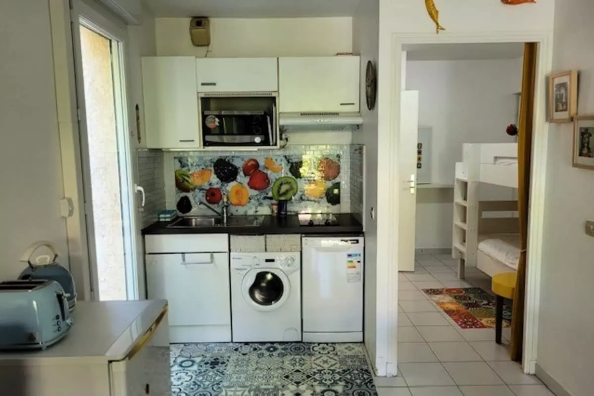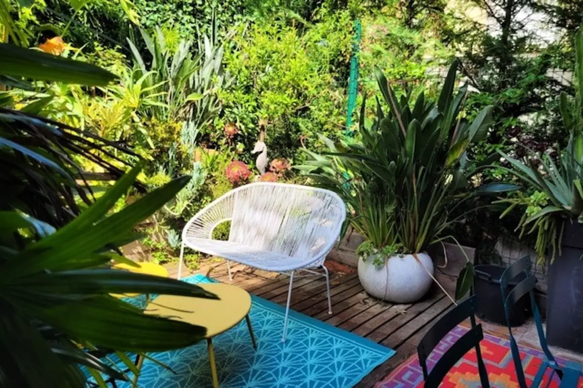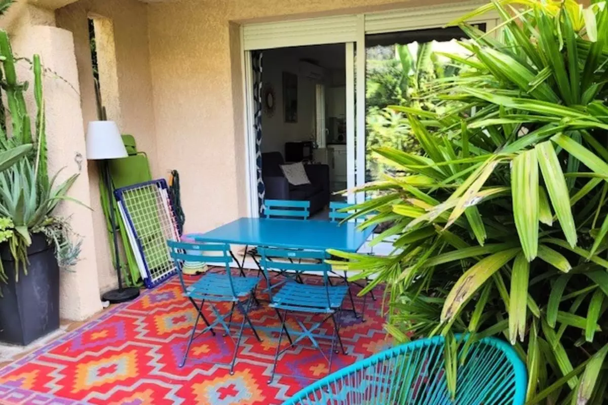 Le studio fait 30 mètres carrés, dispose un jardin, une jolie terrasse meublée, une piscine partagée et peut accueillir jusqu'à quatre personnes. Venez entre amis ou en famille !