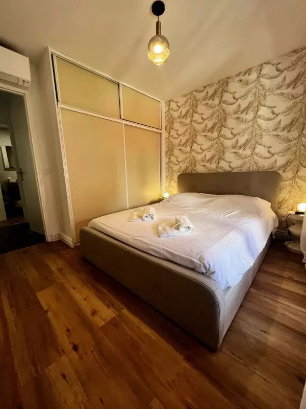 - Chambre 2 : lit double (160x200cm), placard, climatisation, accès au balcon