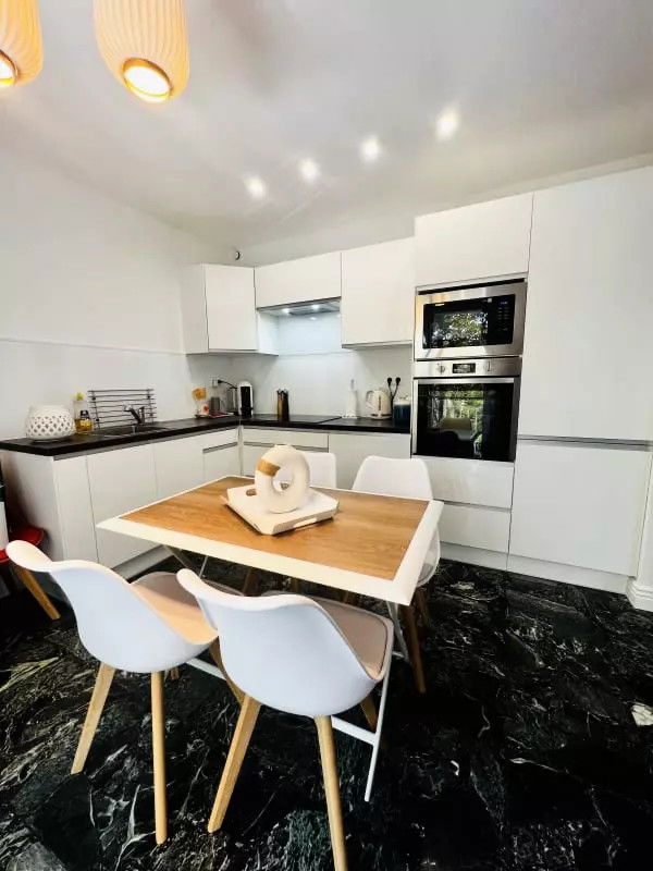 - Cuisine ouverte entièrement équipée (four, bouilloire, machine expresso, micro onde, réfrigérateur)