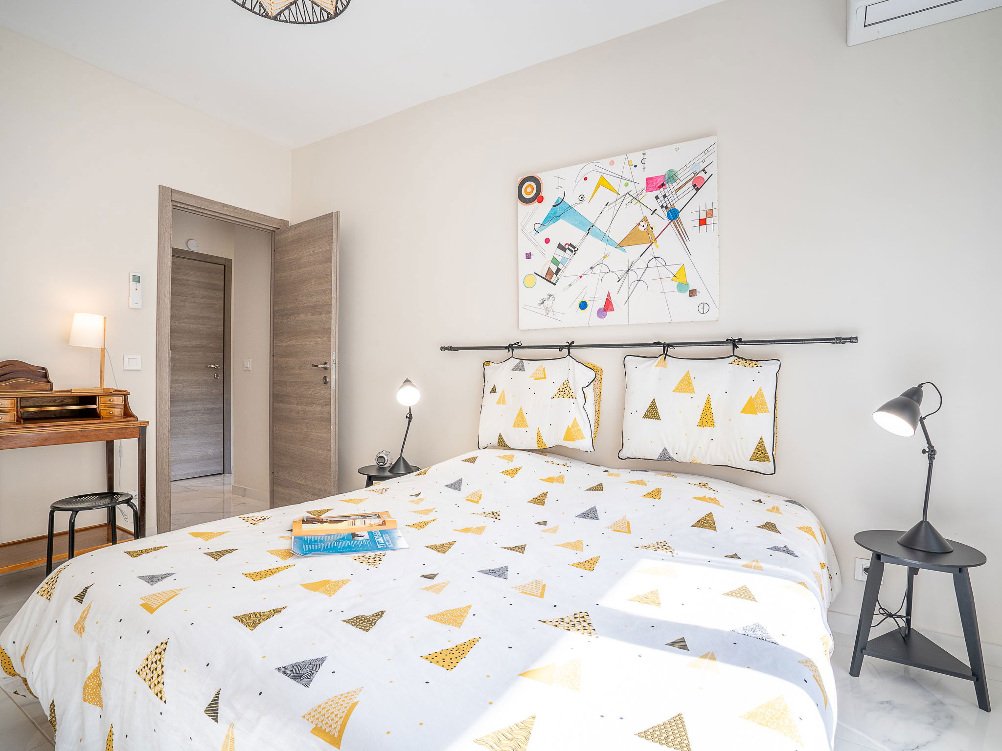 Appartement de 3 pièces 65 m2 au 1er étage. Complètement rénové en 2021, aménagement confortable et agréable: séjour/salle à manger avec TV (écran plat). Sortie sur la terrasse. 1 chambre avec 1 grand-lit (1 x 140 cm, longueur 190 cm). Sortie sur le balcon. 1 chambre avec 2 lits (90 cm, longueur 190 cm). Cuisine ouverte (four, 2 plaques vitrocéramiques, grille-pain, bouilloire électrique, micro-ondes, cafetière électrique, Capsules pour machine à café (Nespresso) (NON INCLUSES)). Sortie sur la terrasse. Douche, WC séparé. Air-conditionné, chauffage à air chaud. Balcon 8 m2, terrasse 10 m2. Meubles de terrasse. A disposition: lave-linge. Internet (Connexion WIFI, gratuit). Veuillez noter: logement non-fumeur. Détecteur de fumée. 06029022758HT