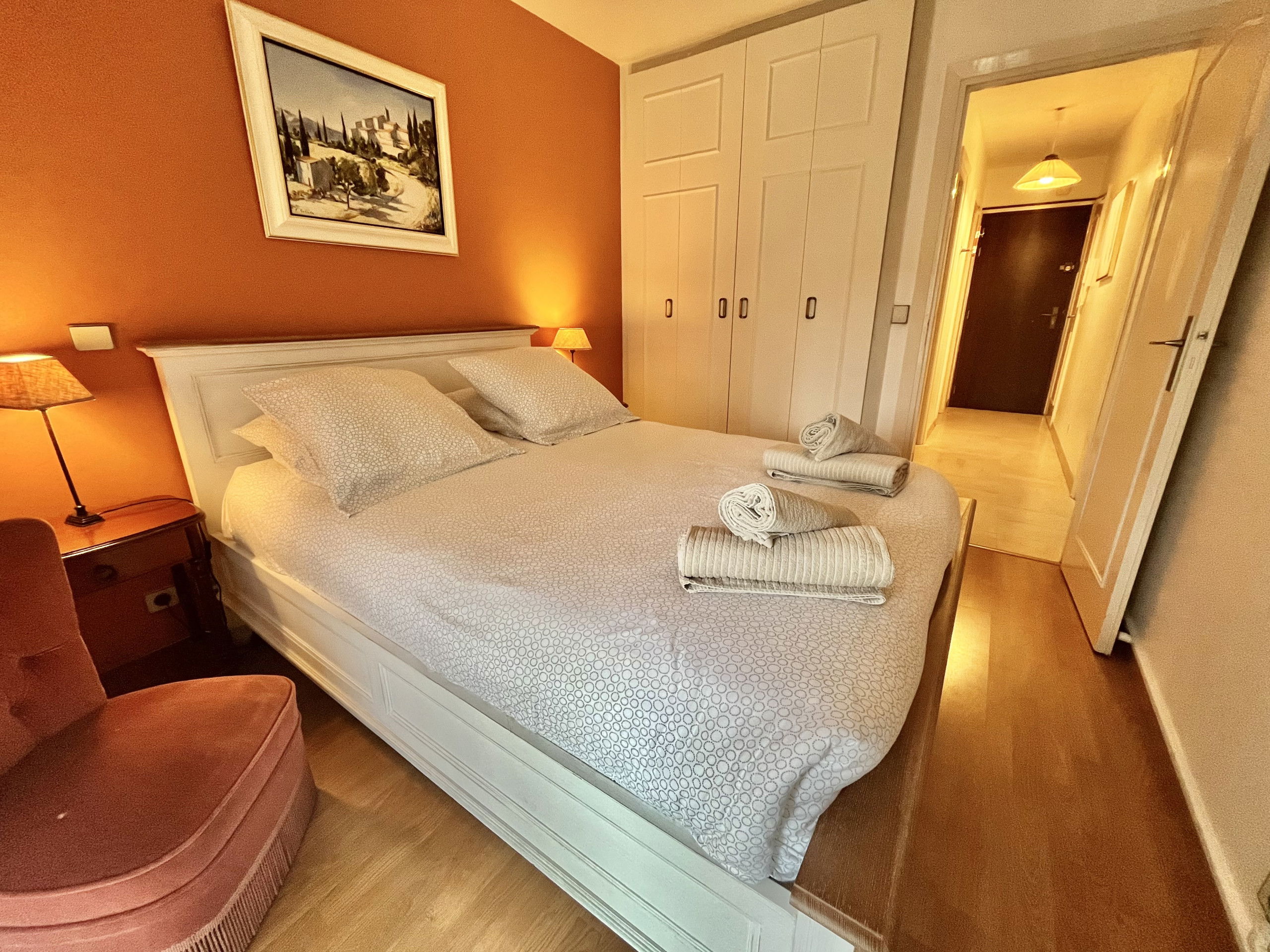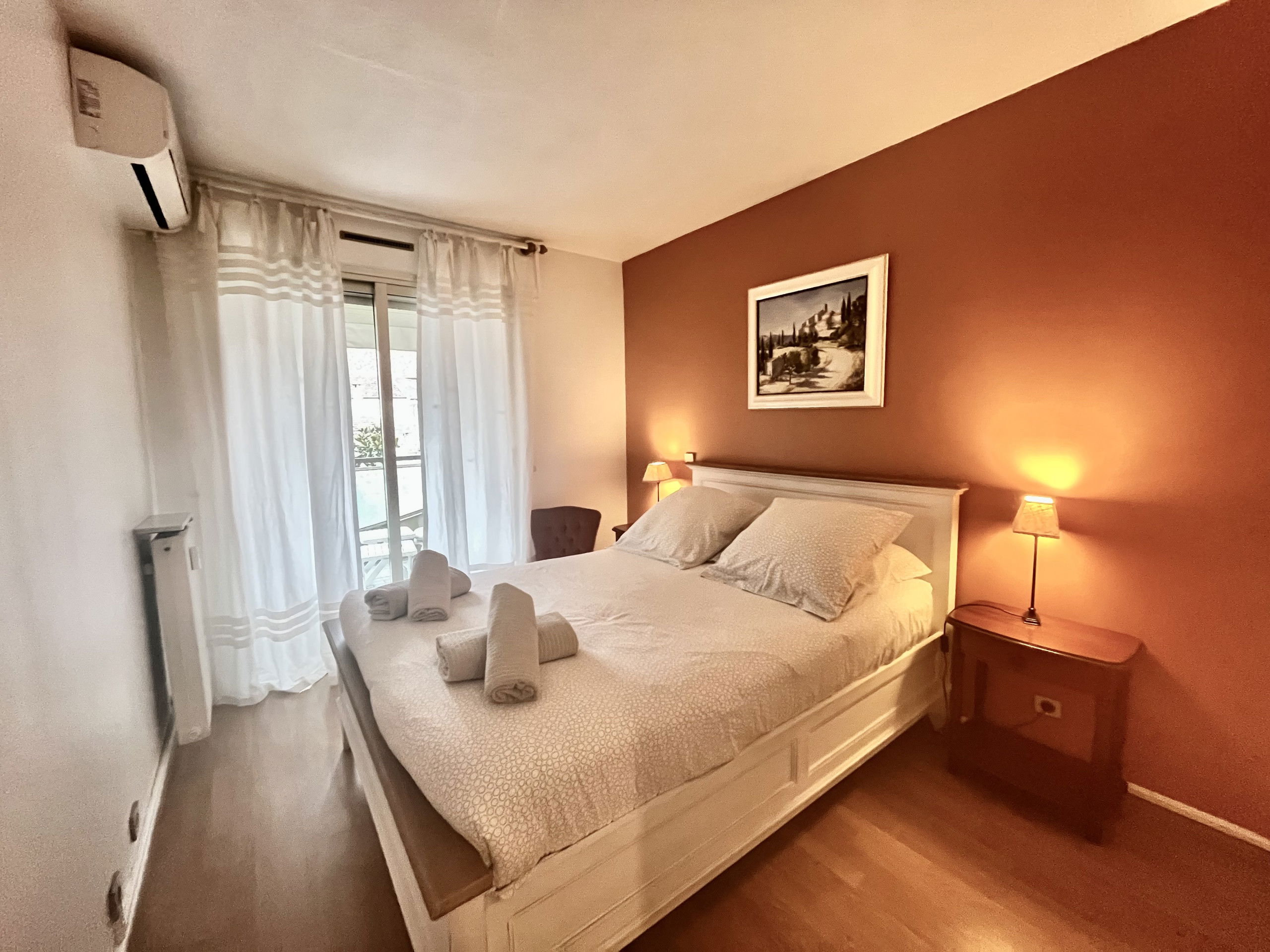 Situé dans une résidence sécurisée à 10 minutes à pied des plages et de la Croisette, ce coquet deux-pièces de 45 m² propose un séjour avec canapé convertible, cuisine ouverte et une large terrasse. L’appartement comprend également une chambre avec lit double, une salle de bain et un WC indépendant. Il est équipé du Wi-Fi, de la climatisation et dispose d’un parking privatif en sous-sol. Capacité : 4 personnes.