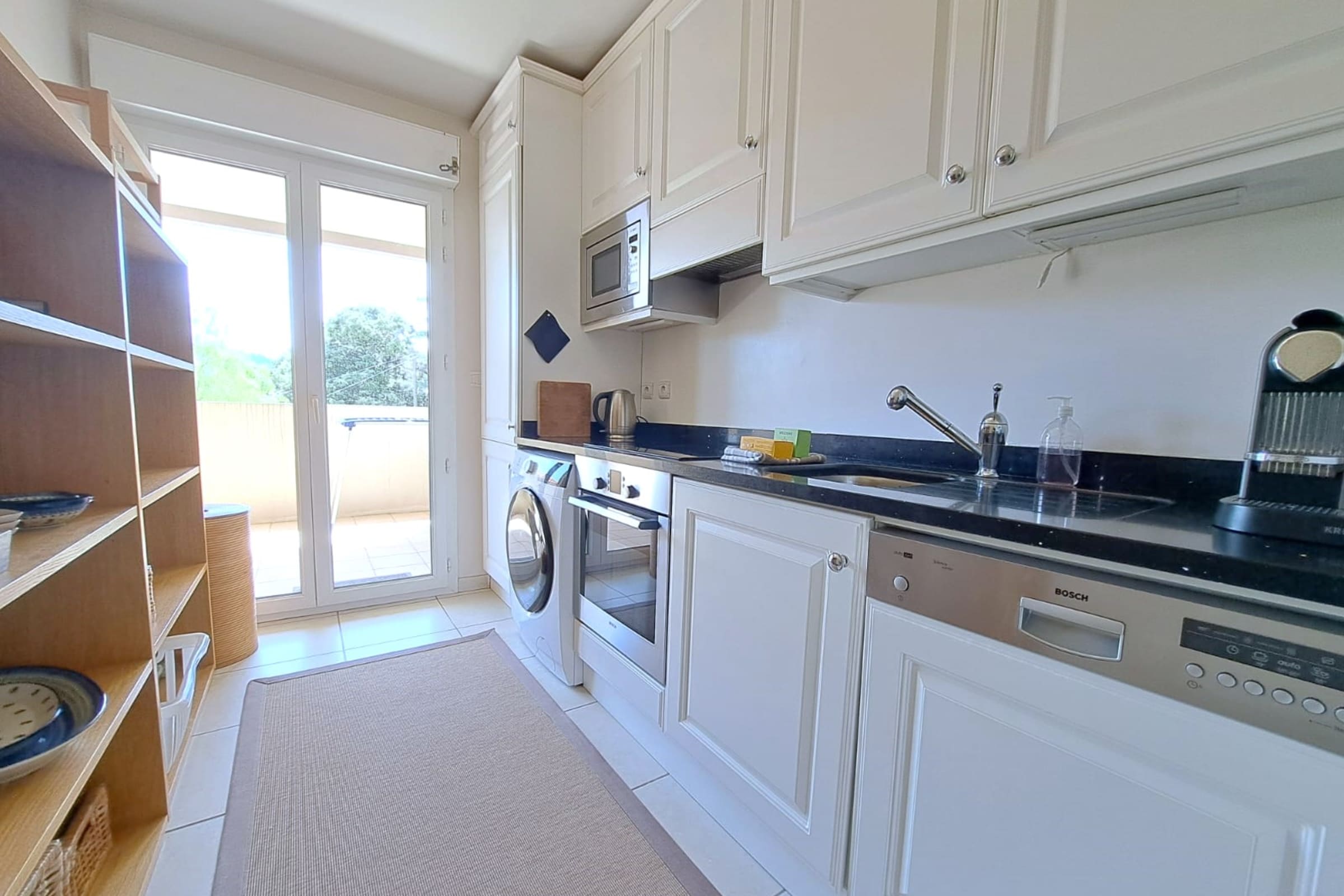 • CUISINE entièrement équipée : plaques de cuisson, micro-ondes, réfrigérateur, lave-linge, machine à café Nespresso et lave-vaisselle.