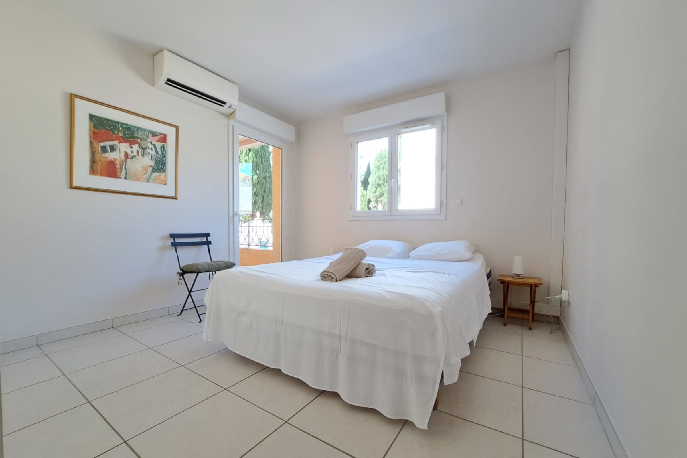 • CHAMBRE 2 : Composée d'un lit Queen Size (160x200), d'un dressing et d'un bureau. Pièce bénéficiant de la climatisation.