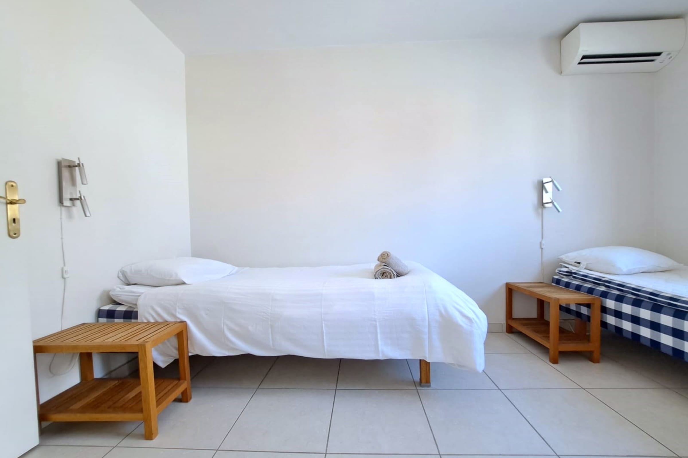 • CHAMBRE 3 : Composée de 2 lits simples (90x200) et d'un dressing. Pièce bénéficiant de la climatisation.