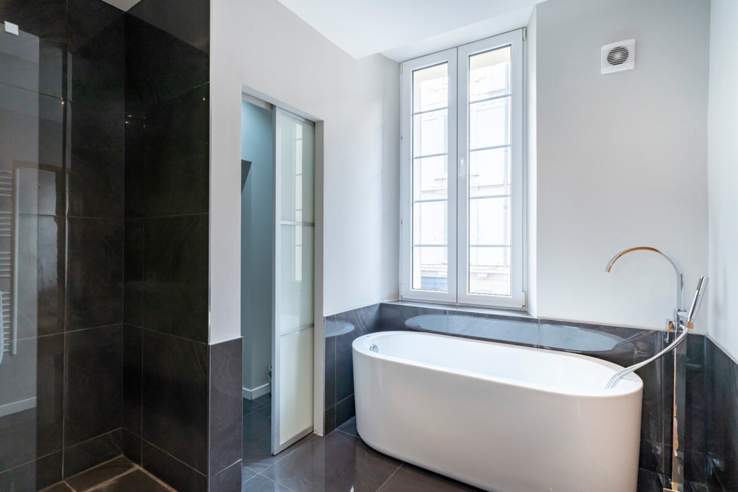 - 1 salle de bain avec douche et baignoire
