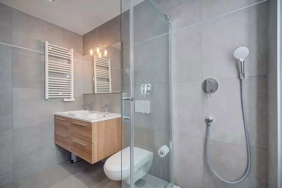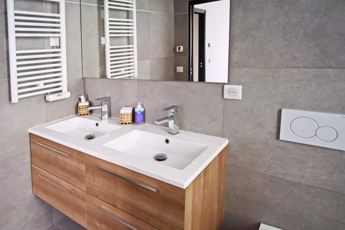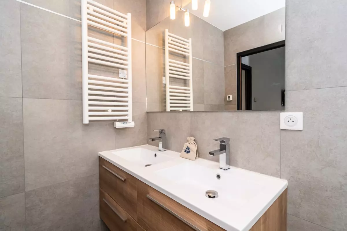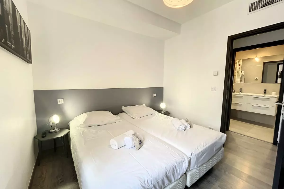 Il est composé de 2 chambres ayant chacune la possibilité de choisir (sur demande) 1 lit double ou 2 lits simples. Une des chambres dispose de sa salle de bain en suite (douche italienne, wc, sèche cheveux). 2e salle de bains privative disposant également d’une douche italienne, avec wc séparés.