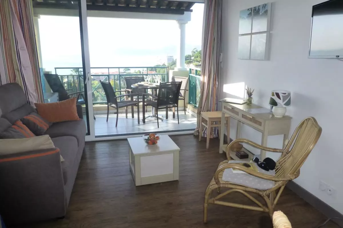 - Un salon climatisé avec un canapé-lit en cuir Center de qualité pour vous détendre après une intense journée à la mer ou à la piscine.