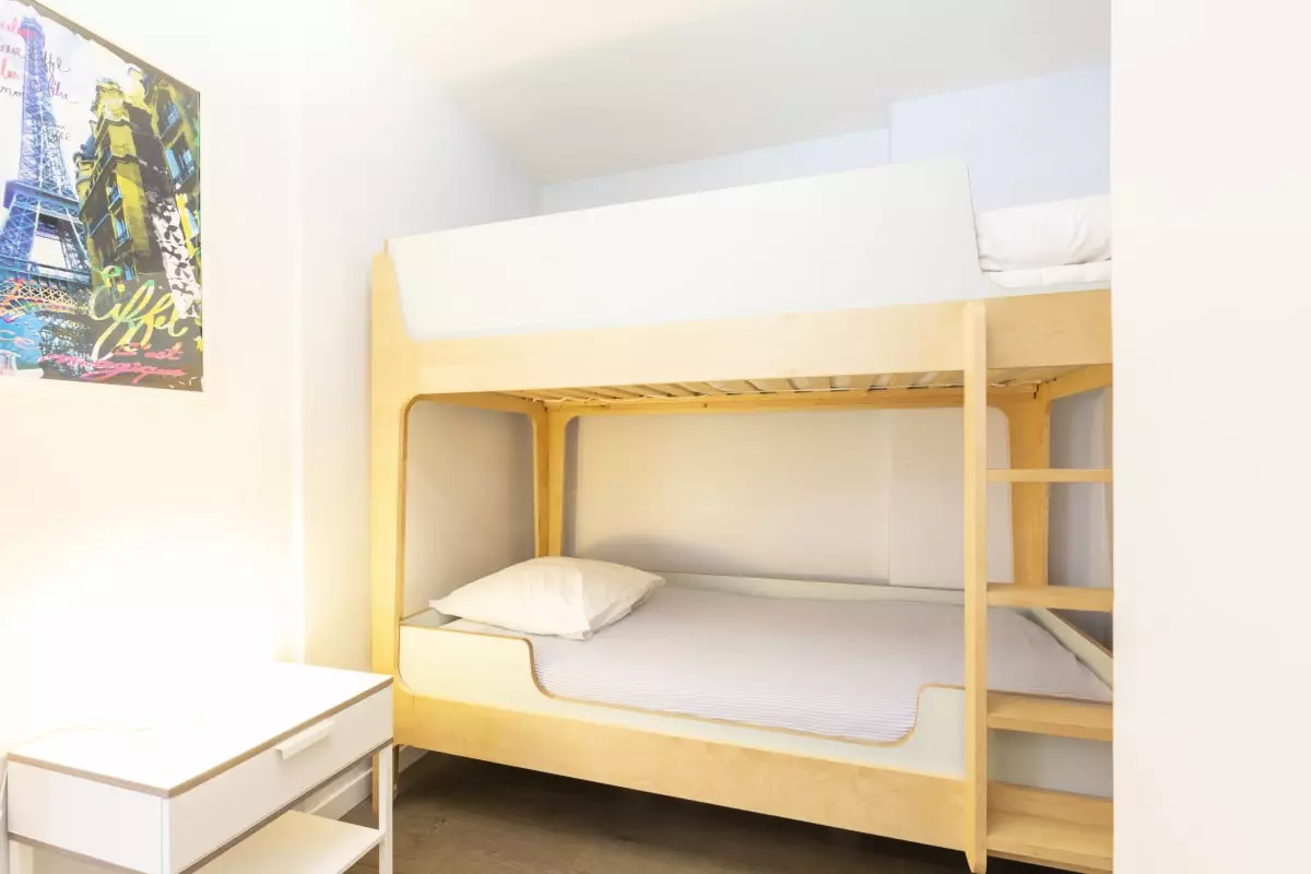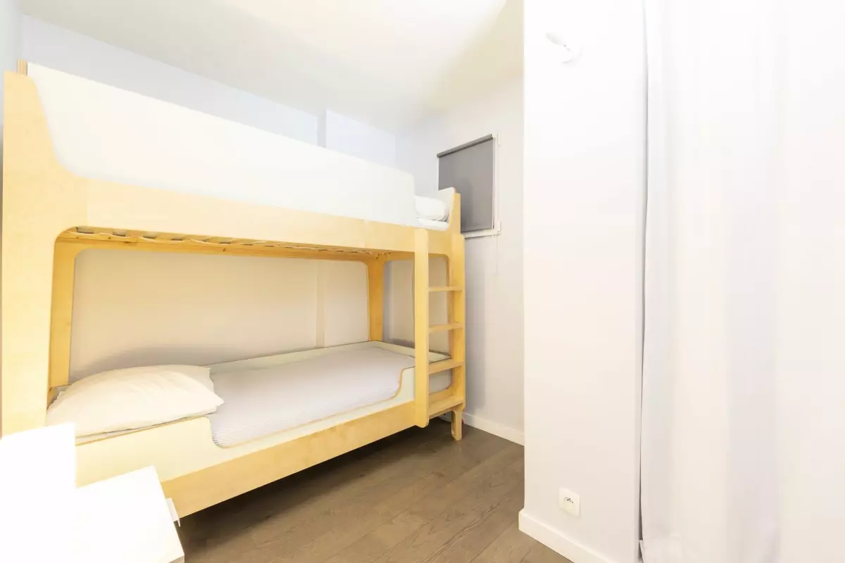 1 chambre avec 2 lits simples (lits superposés) de 90 cm, pour 2 personnes,