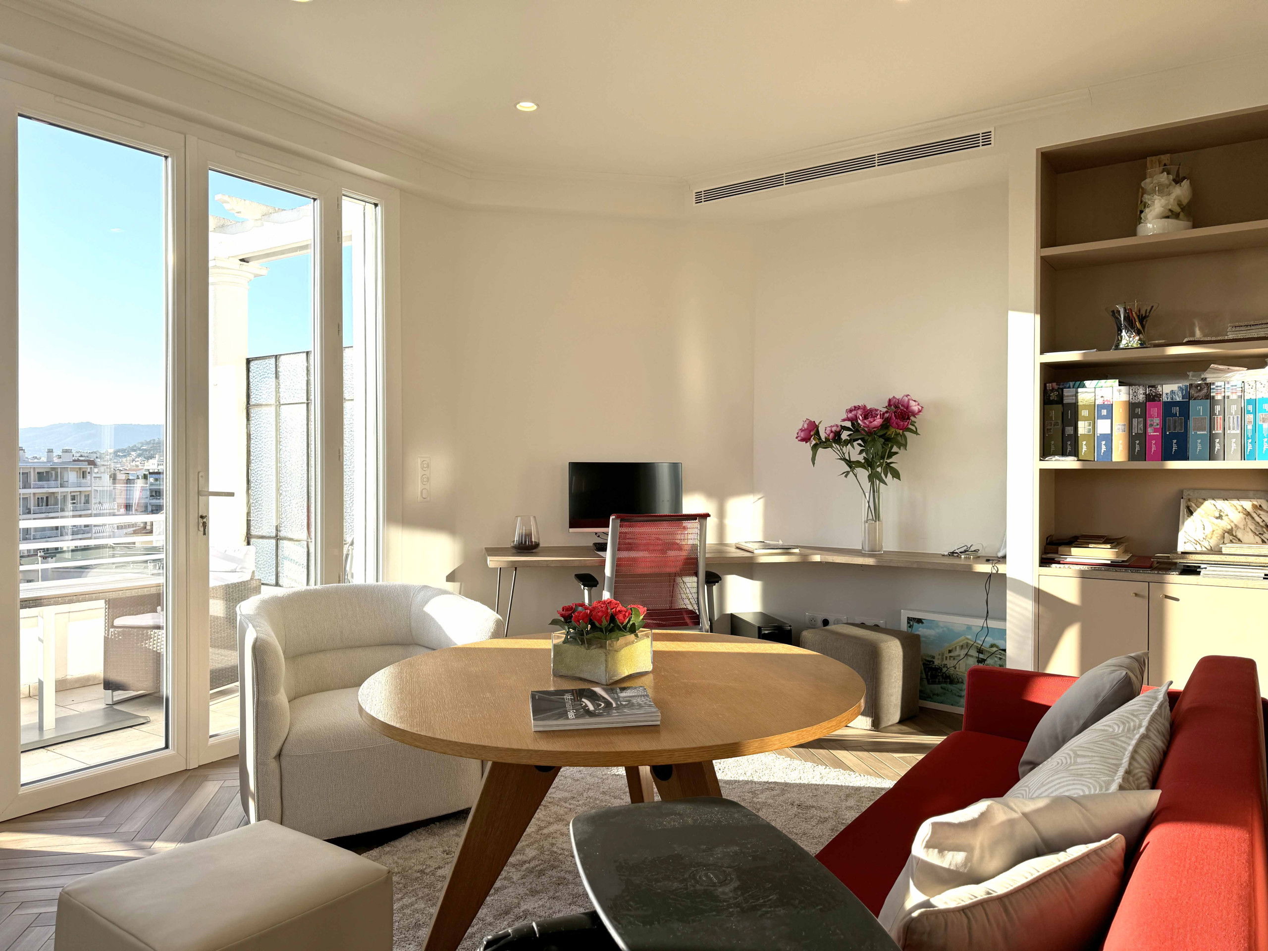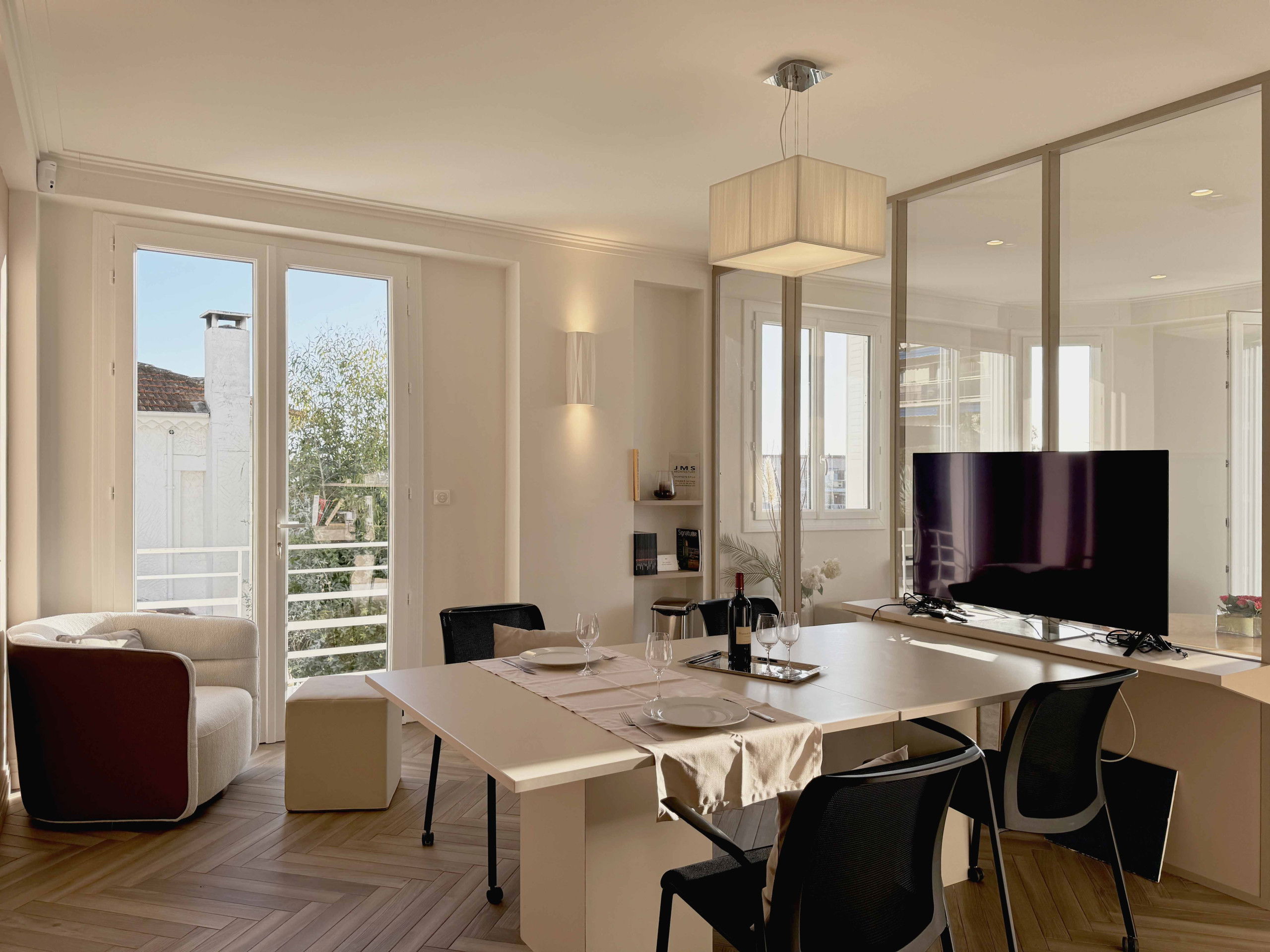 Appartement à Cannes de 75m2 avec terrasse ensoleillée et très belle vue dégagée : 2 chambres , un salon avec TV ouvrant sur la terrasse et une salle à manger/bureau pour un confort optimal. Le logement dispose de l'accès internet (wifi), du chauffage électrique, de la climatisation dans d'une place de parking extérieur . La cuisine indépendante, avec plaque à induction, est équipée avec réfrigérateur, lave-vaisselle, vaisselle/couverts, ustensiles/cuisine, cafetière, grille pain et bouilloire.
