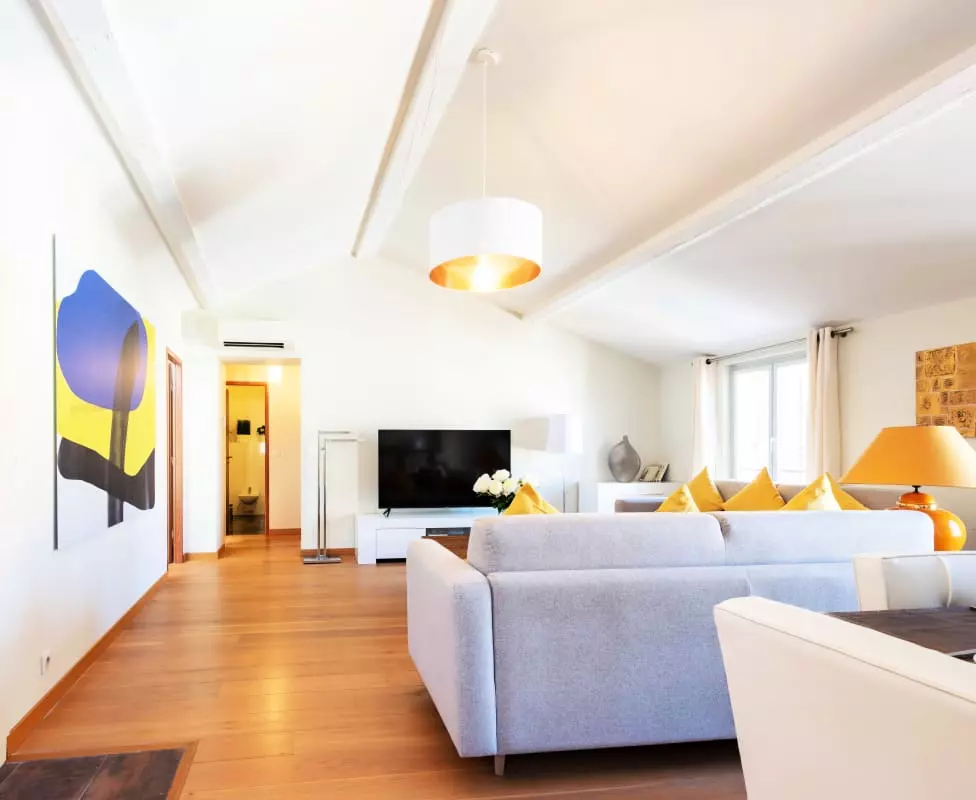 Situé dans un immeuble bourgeois, ce vaste 3 pièces de 80 m² se situe sur la prestigieuse rue d’Antibes, à seulement 300m du Palais des Festivals. Accueillant confortablement 6 personnes, cet appartement exceptionnel vous offre une décoration de style et des lits neufs de grande qualité. Appartement au dernier étage, entièrement rénové et silencieux.