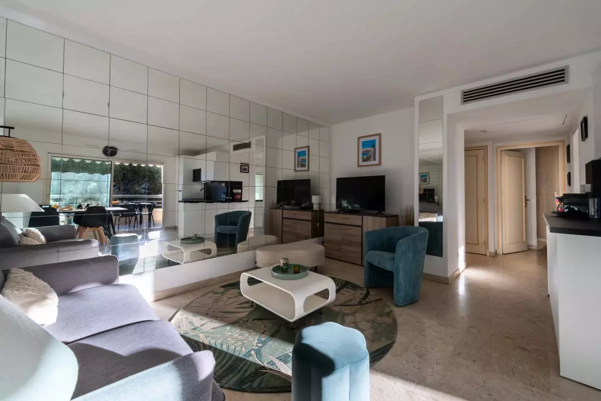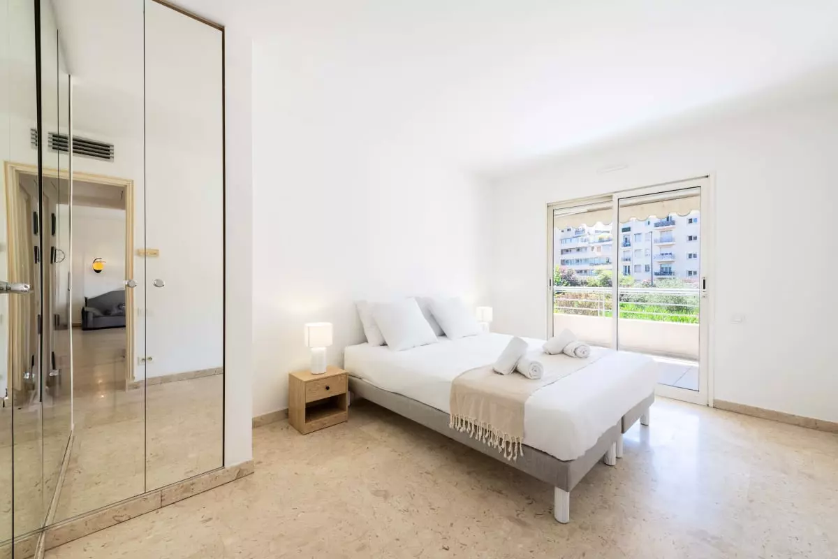 Un appartement fonctionnel et lumineux, à quelques pas de la Croisette et des plages, dans une résidence avec piscine. On y profite de la vie cannoise à pied : baignades, balades, shopping ou sorties en terrasse, tout est accessible sans voiture.