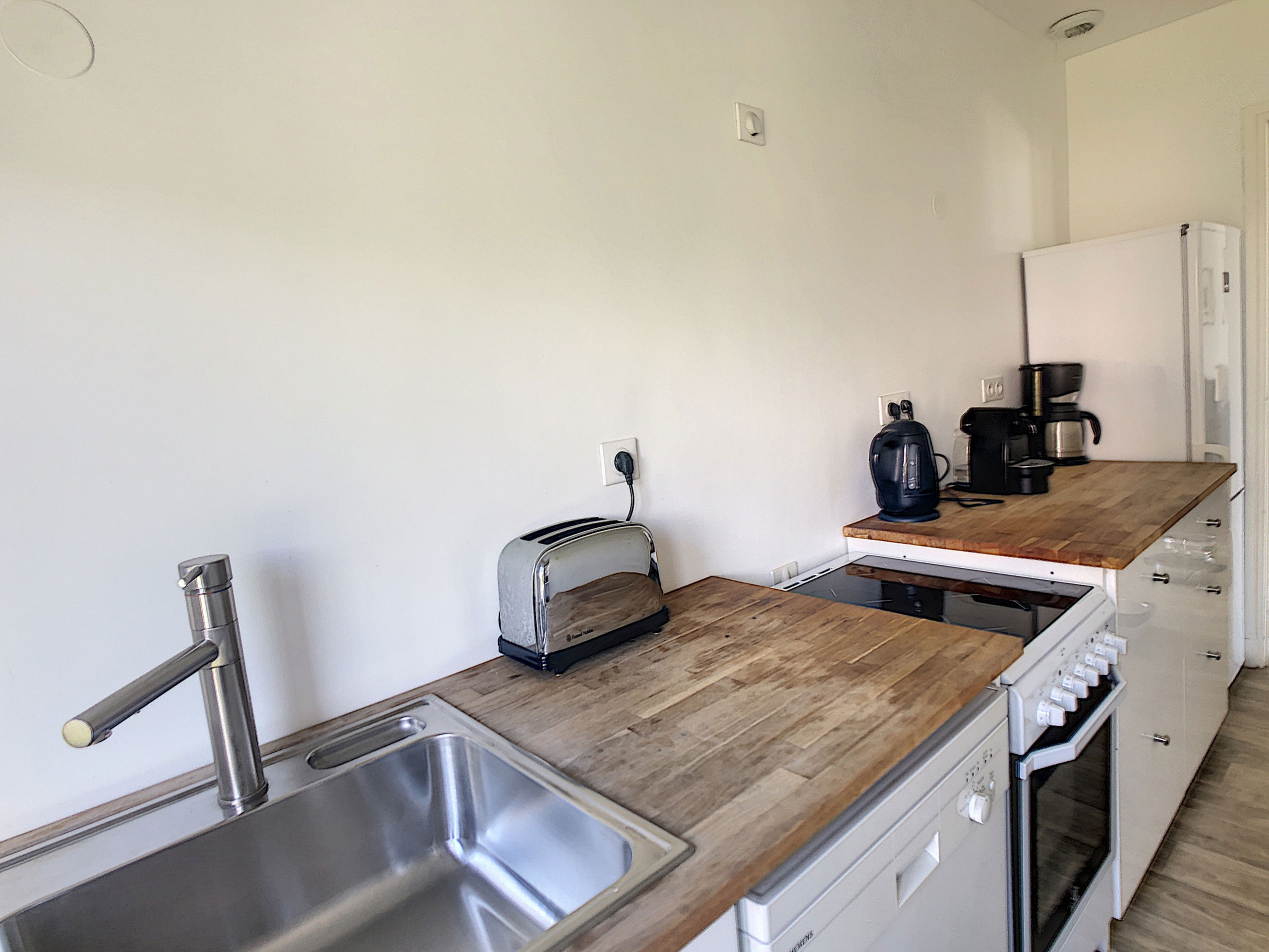 La cuisine séparée est entièrement équipée avec les couverts , un four, lave-vaisselle, cafetière, grille-pain, et un réfrigérateur avec une partie congélateur. Une buanderie avec sèche-linge, machine a laver est également à votre disposition.