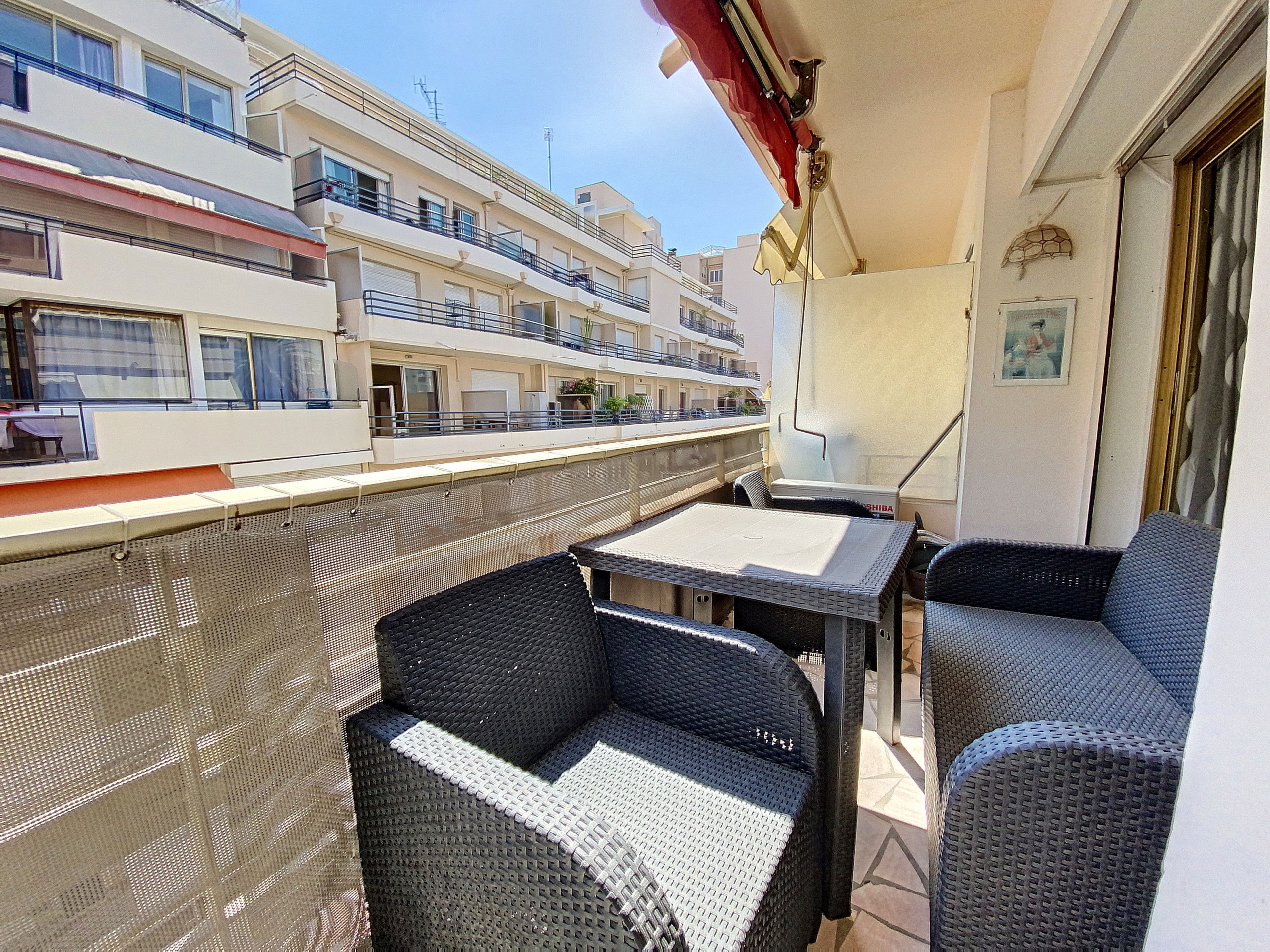 Situé Cannes quartier hôtel Martinez dans un immeuble résidentiel au 4ème étage avec ascenseur.