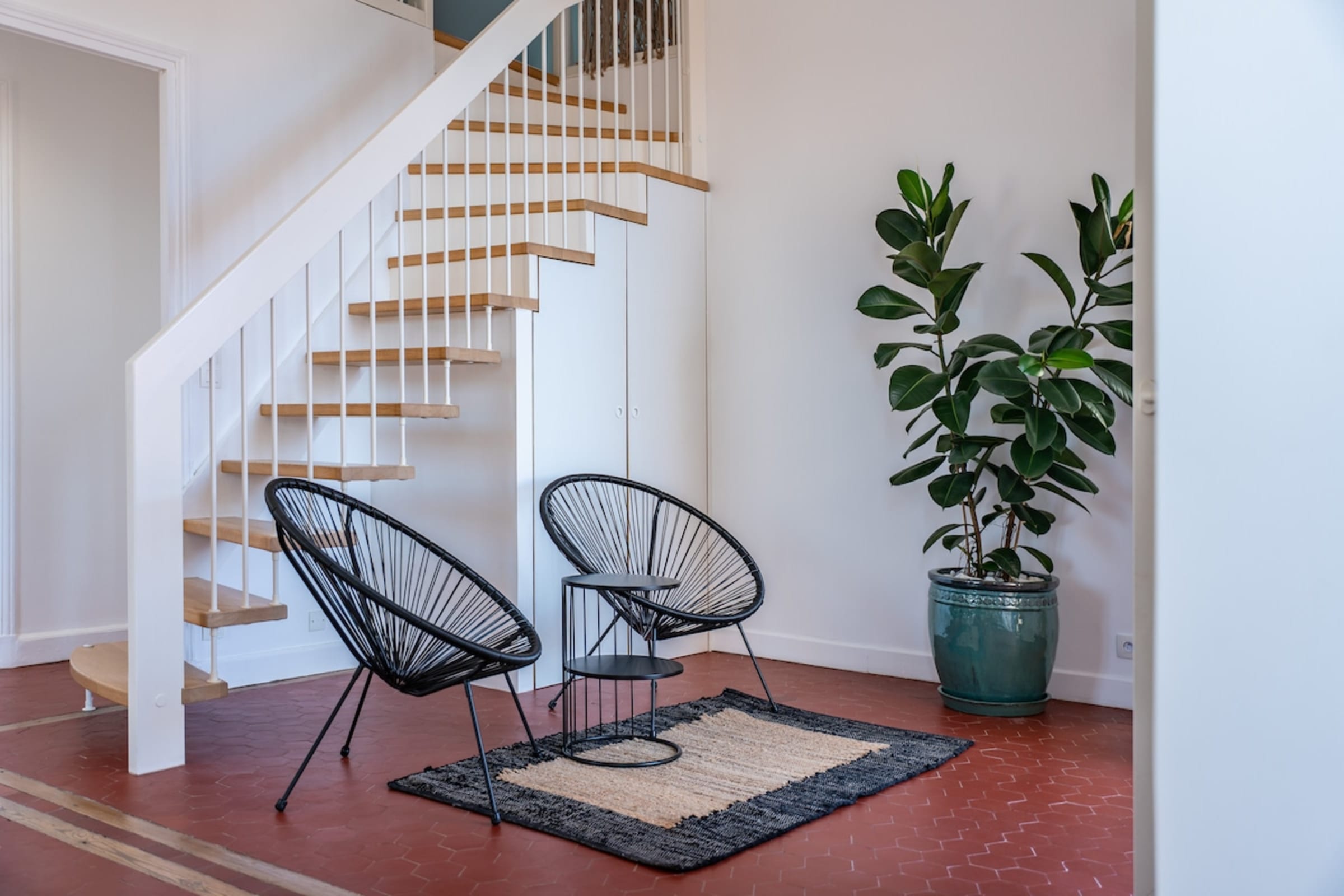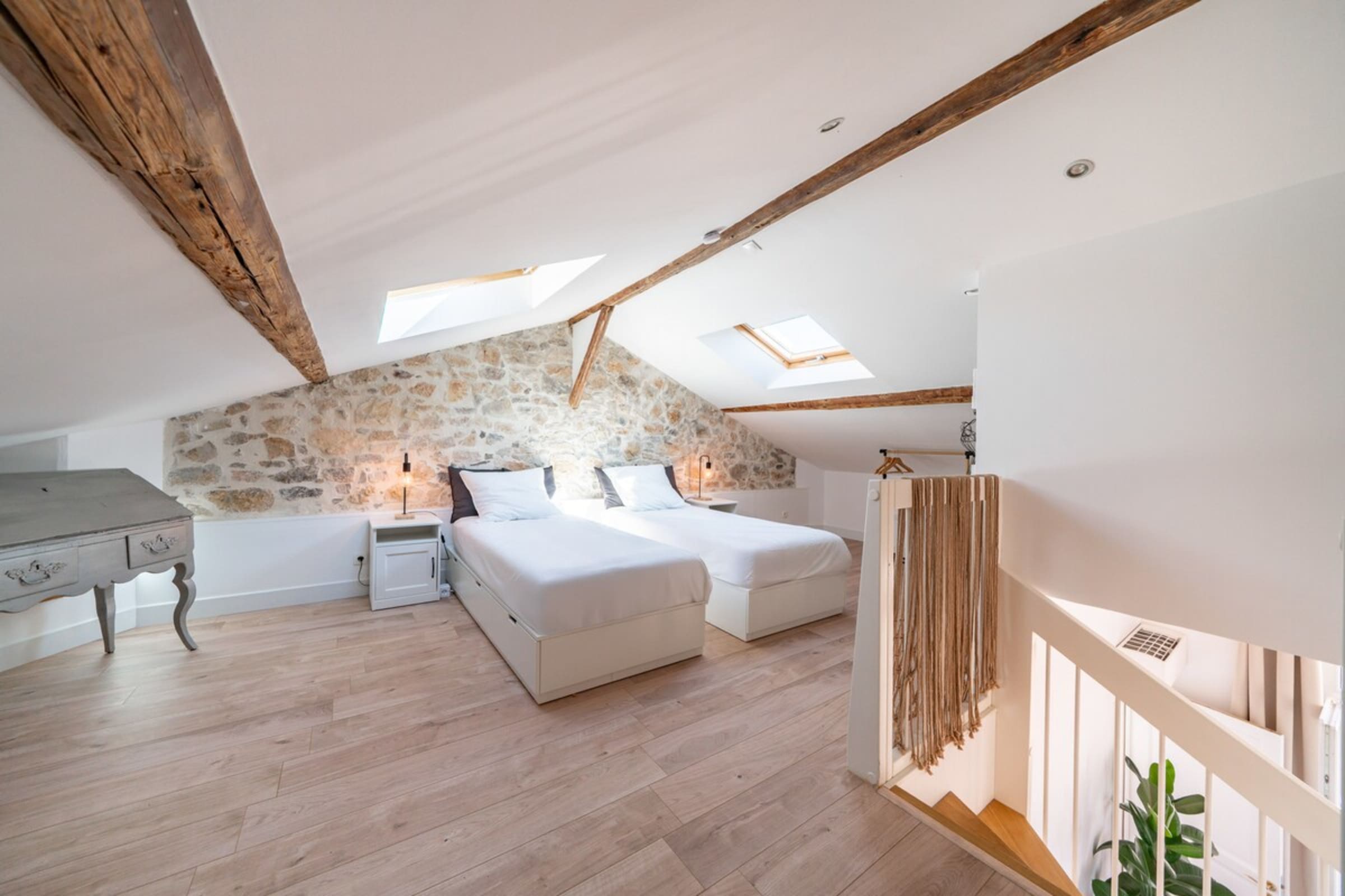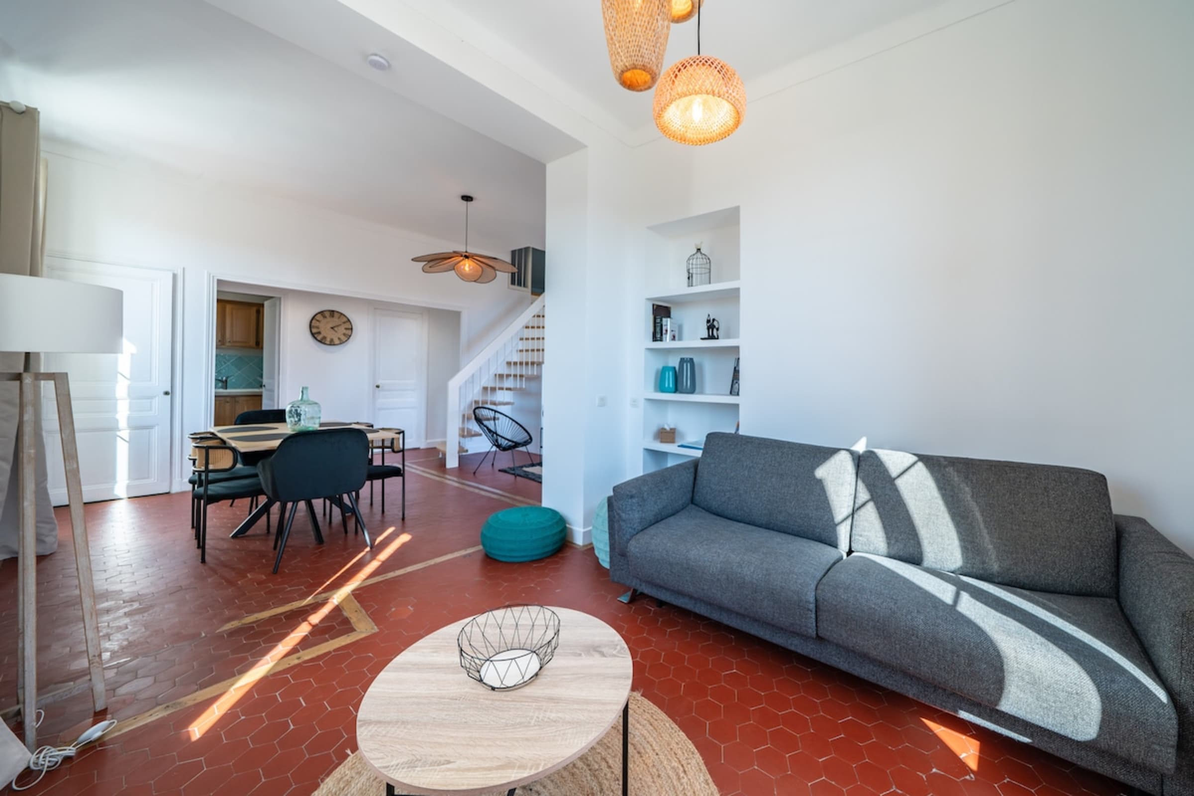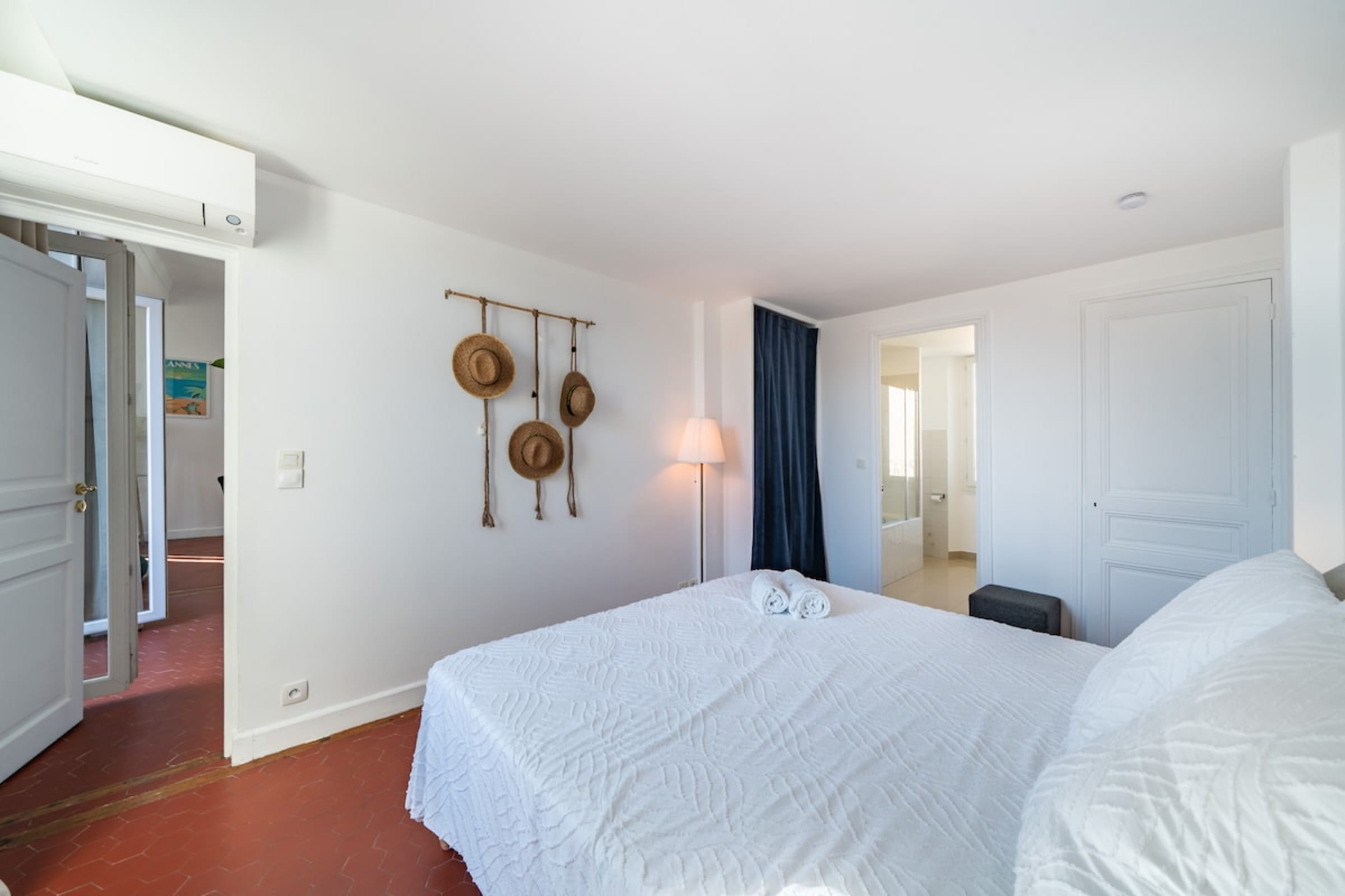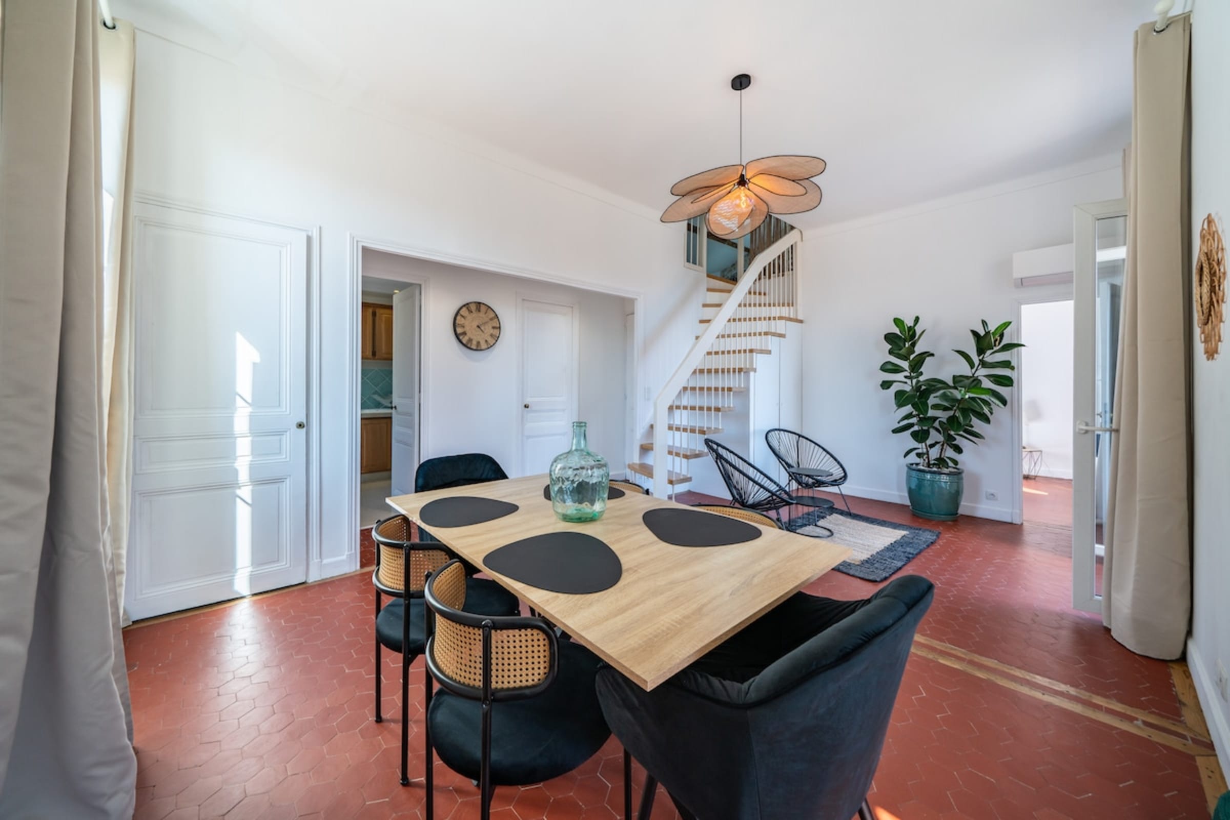Magnifique duplex en 3 pièces, climatisé, à deux pas du centre de Cannes. Composé d'un grand séjour lumineux avec canapé-lit, salle à manger, cuisine séparée équipée, suite parentale avec salle de bain et nombreux rangements, chambre à l’étage modulable (2 lits simples ou 1 lit double). Un salle d'eau supplémentaire complète ce bien sur le niveau principal. Wi-Fi, linge fourni. Profitez de l'élégance et du confort au cœur de la Côte d’Azur.