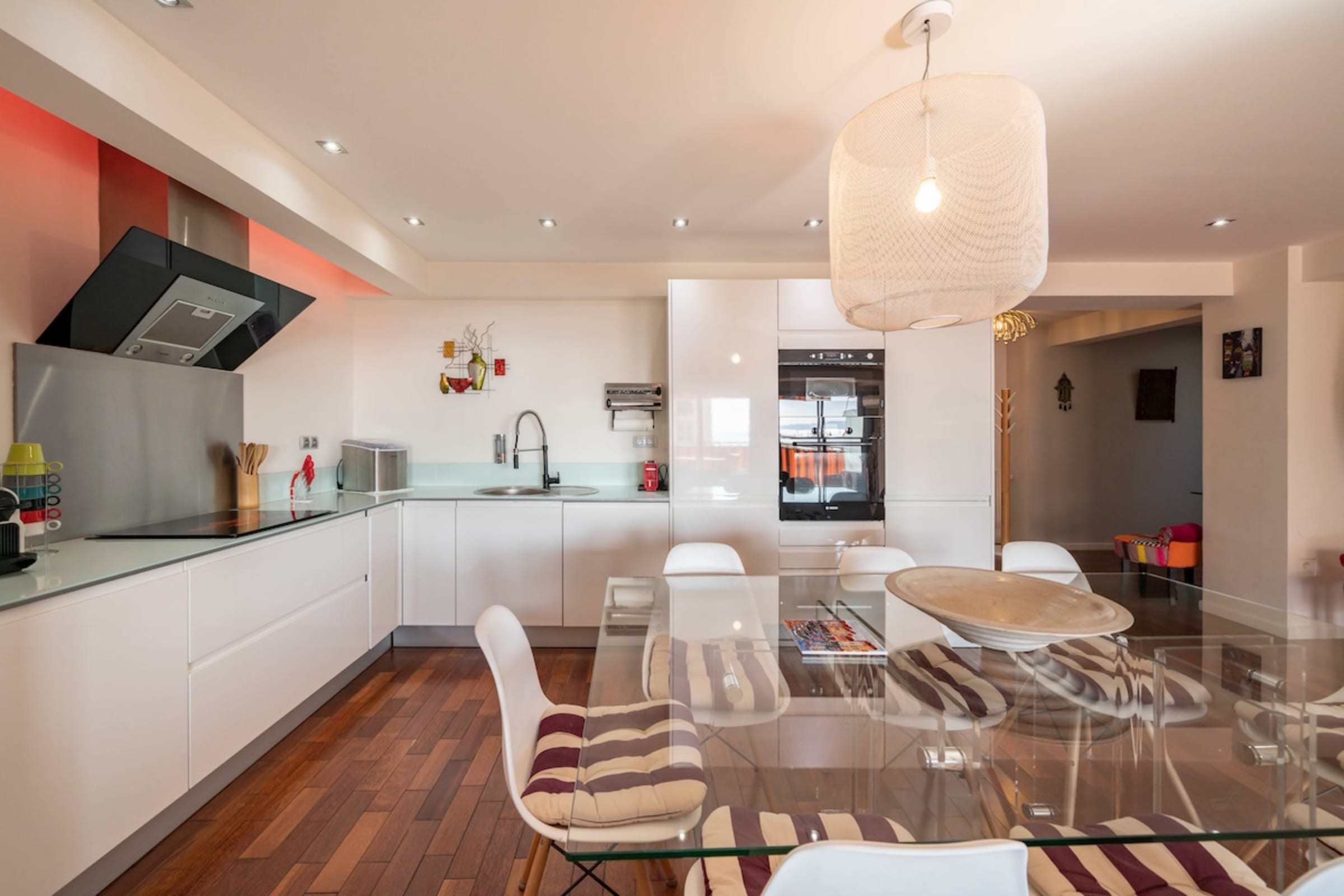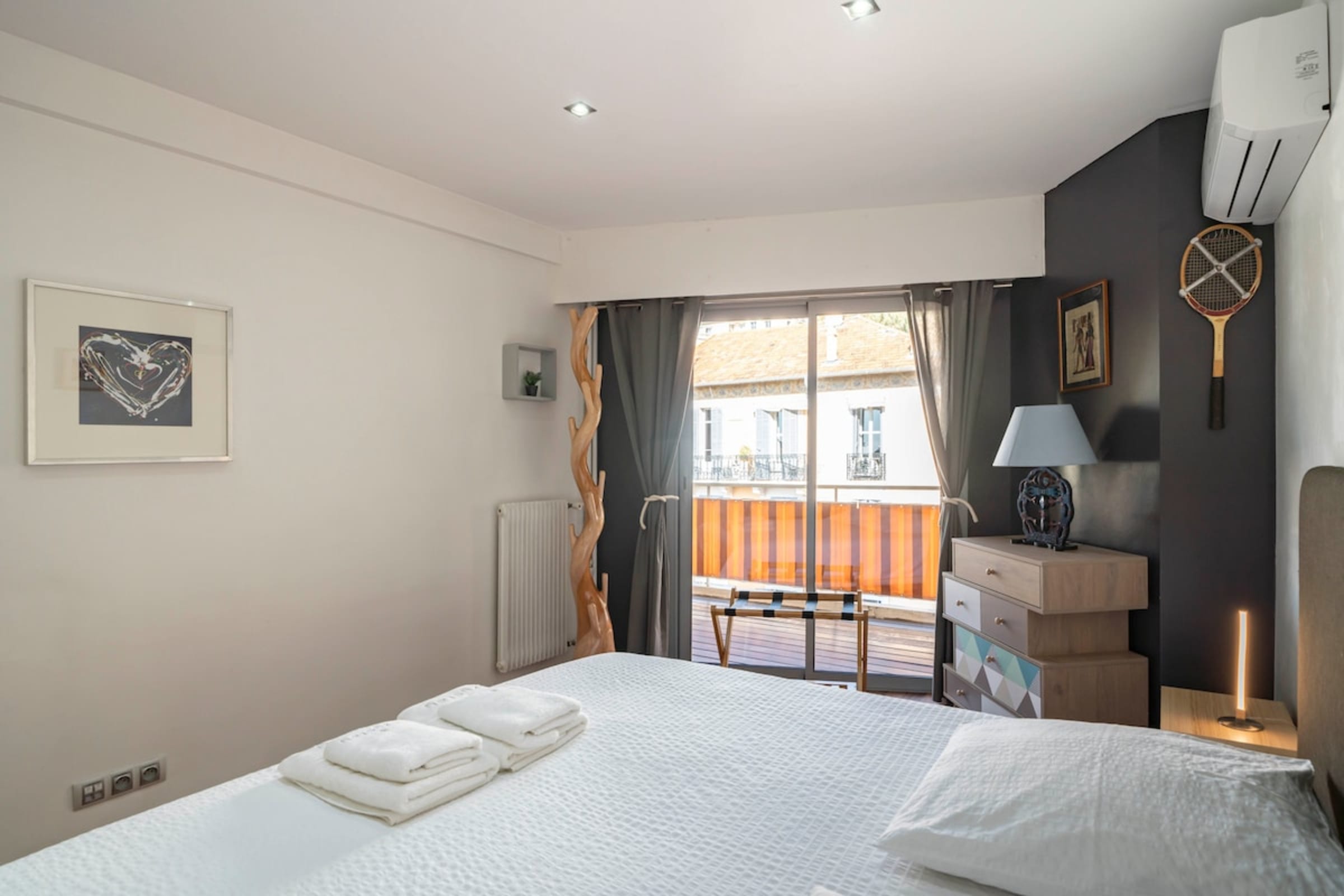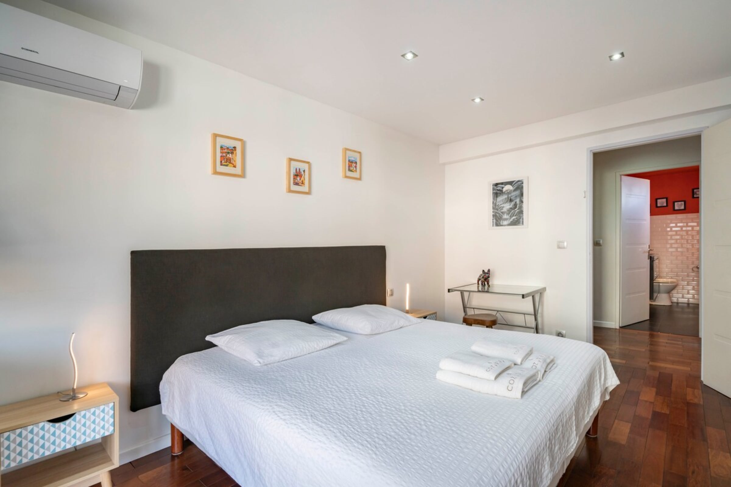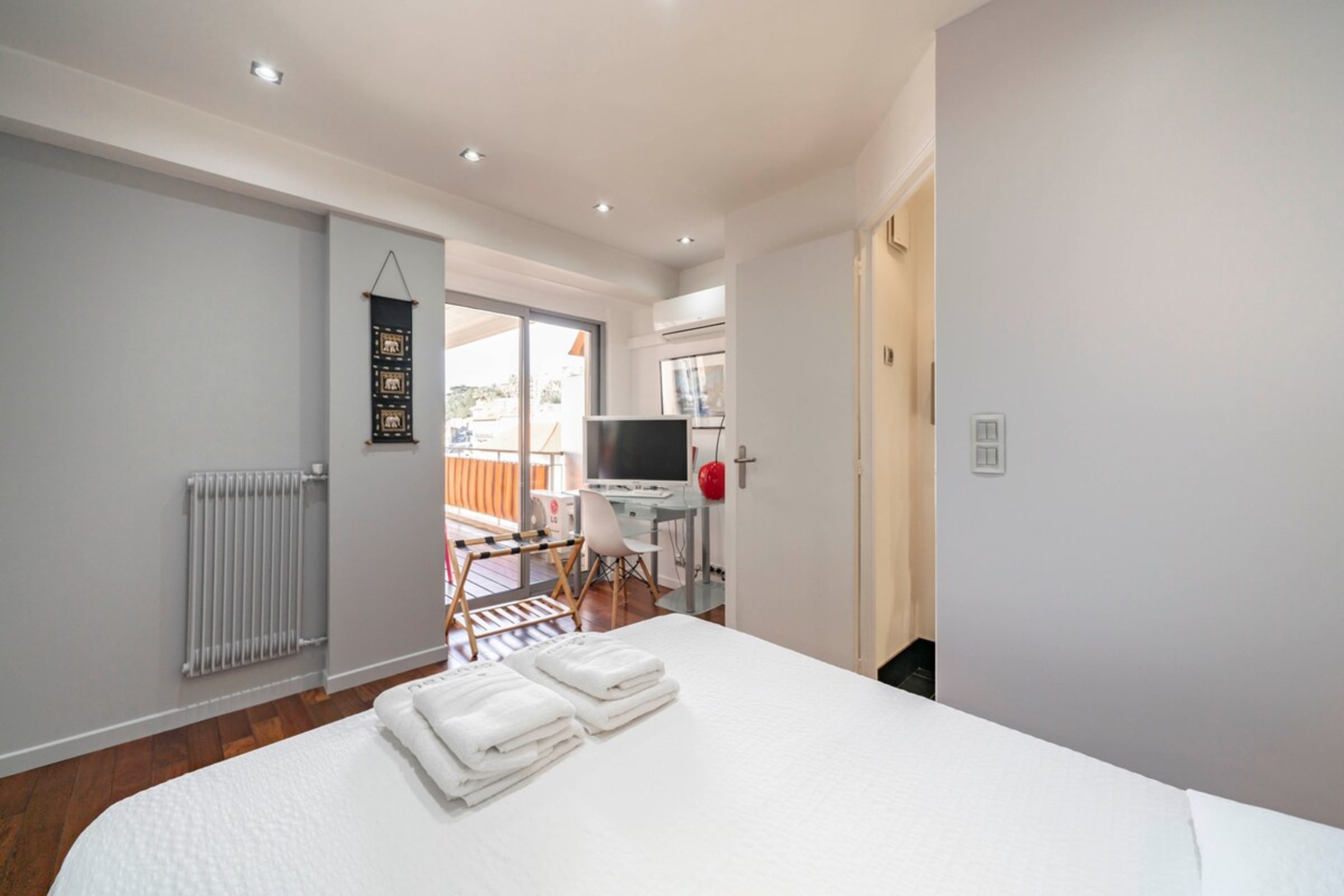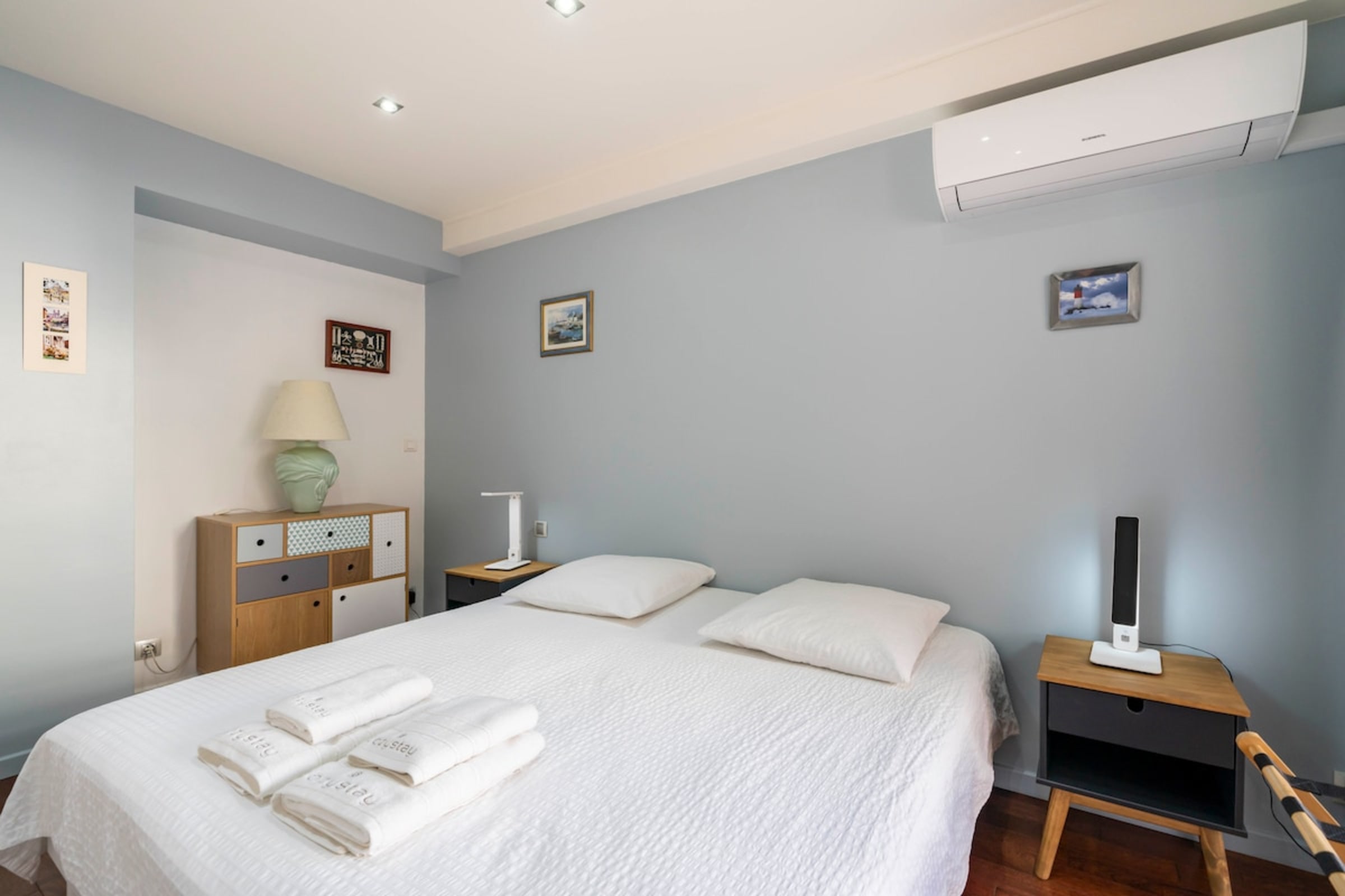 Ce très bel appartement 5 pièces peut accueillir confortablement jusqu'à 8 personnes dormant dans 6 lits différents. Il est idéalement situé dans le coeur du centre ville de Cannes, à 2minutes à pied du célèbre marché Forville, de la Mairie de Cannes et du vieux Port, 5min à pied du Palais des Festivals et de la Croisette. Il bénéficie d'une grande terrasse avec une très jolie vue sur la mer et le port. Vous allez l'adorer!