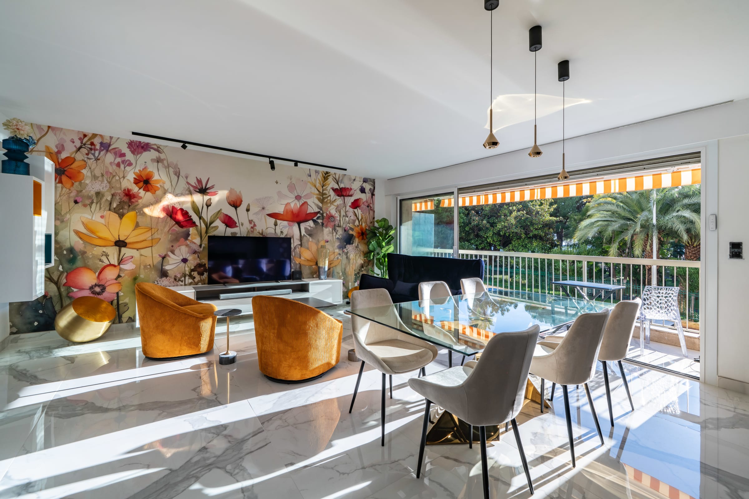 Les deux terrasses prolongent naturellement les espaces intérieurs et invitent à profiter du climat méditerranéen, du petit-déjeuner au dîner. L’agencement fluide, la climatisation intégrale et les volumes généreux répondent aux attentes d’une clientèle internationale, familiale ou business, en quête de confort sans compromis.
