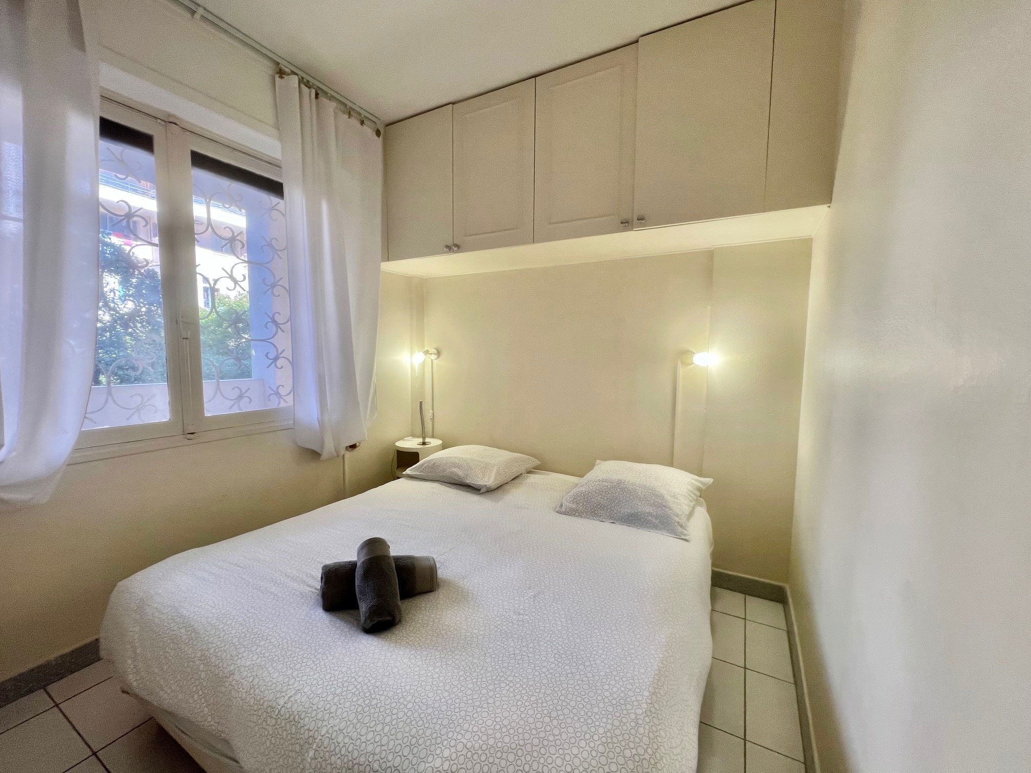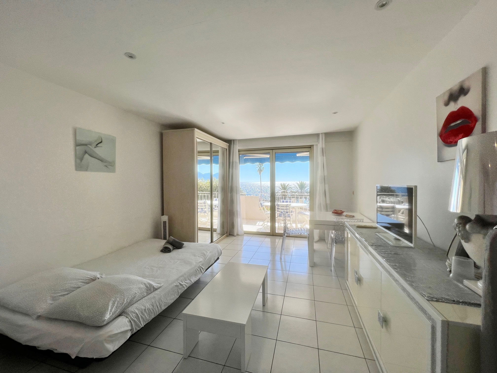 Face aux plages du Midi et à seulement quelques minutes à pied du Palais des Festivals et de la Croisette, ce charmant 2 pièces en étage offre un cadre idéal pour un séjour à Cannes. L’appartement dispose d’une pièce à vivre avec cuisine équipée, ouverte sur le coin salon avec canapé convertible double et le coin repas. La pièce s’ouvre sur une agréable terrasse exposée plein sud, offrant une vue sur la mer et les îles de Lérins. L’hébergement comprend une salle de bain avec WC et machine à laver ainsi qu’une chambre avec deux lits individuels.