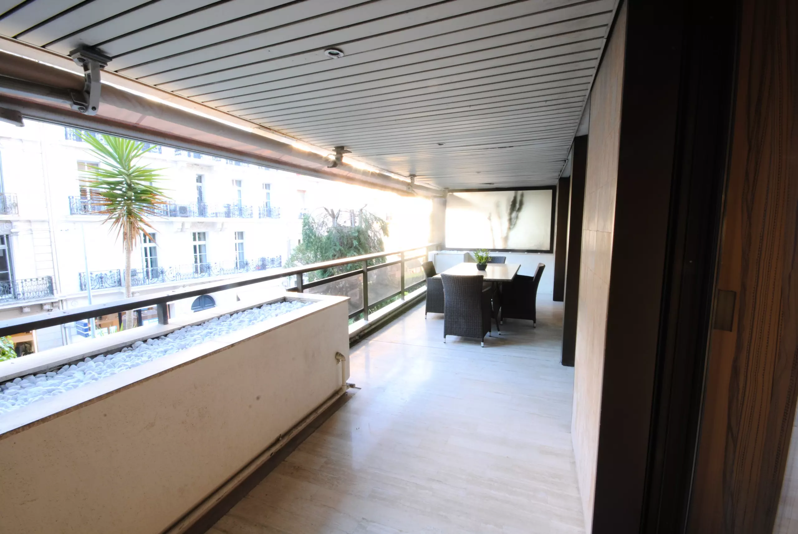 Chaque pièce de cet appartement magnifique s'ouvre sur la terrasse, où vous pourrez vous détendre et profiter du mobilier d'extérieur.