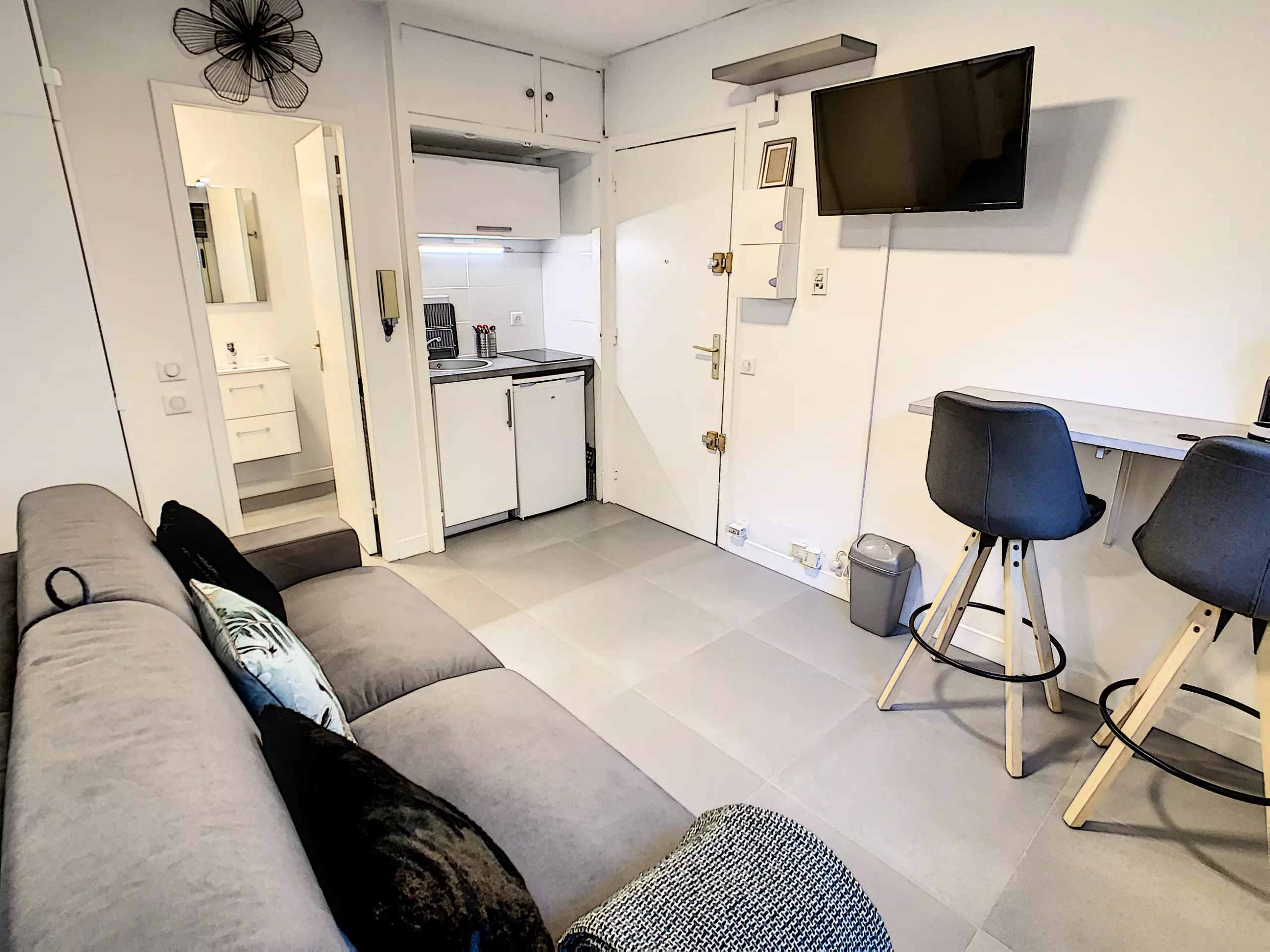 Bienvenue dans notre studio de 13m² entièrement rénové et équipé, situé au cœur de Cannes, à seulement 3 minutes à pied du Palais des Festivals.
