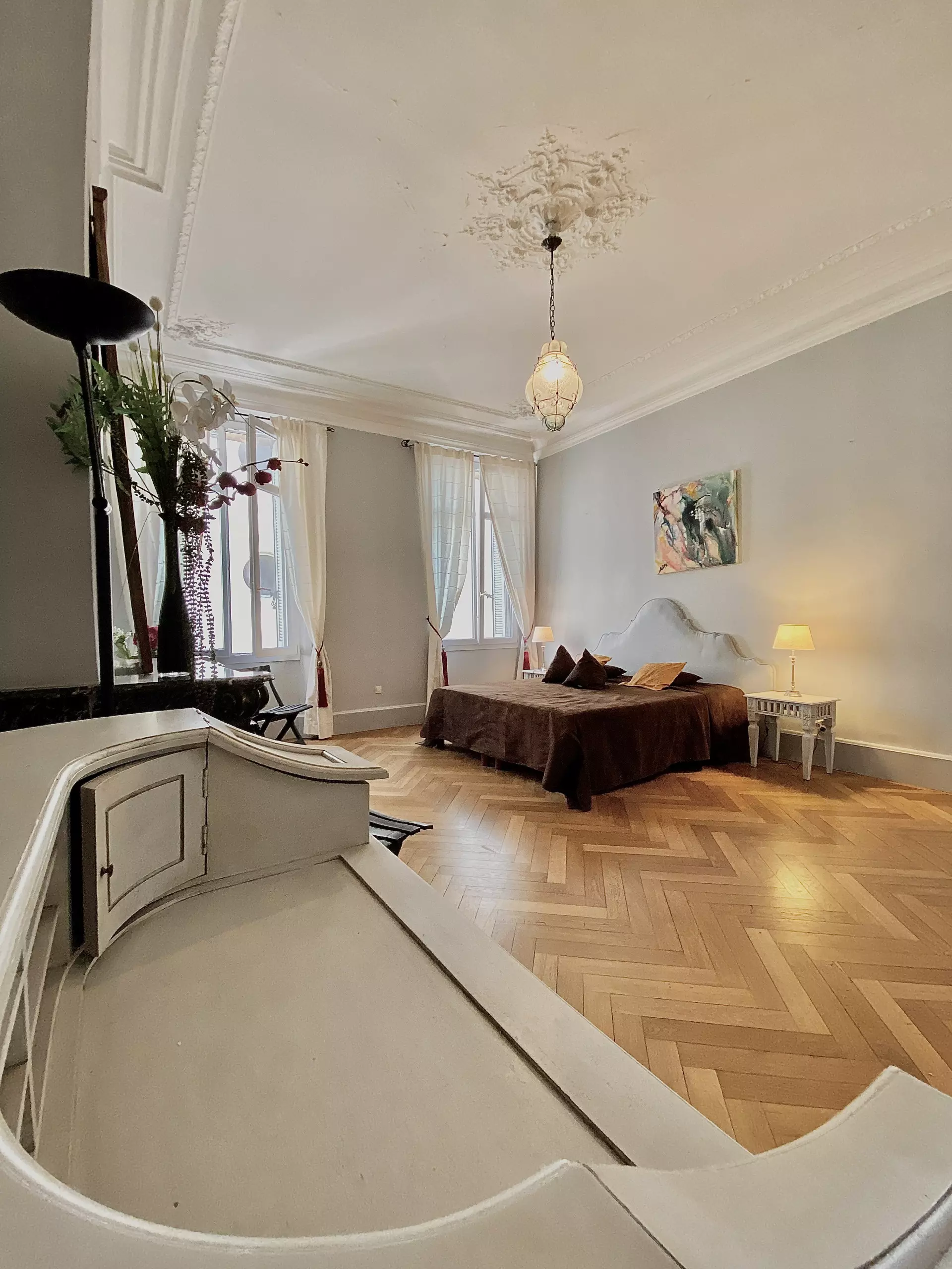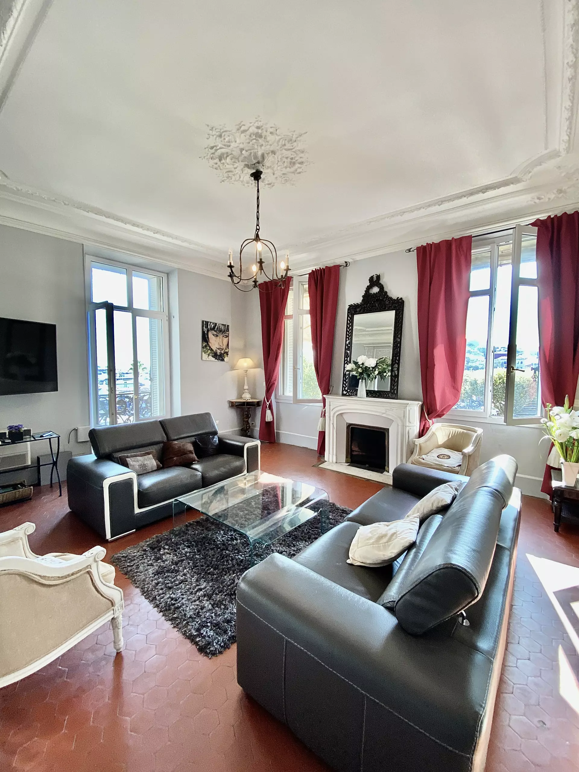 Situé à seulement une rue du Palais et à 100 mètres des plages de La Croisette et des magasins de luxe, cet élégant appartement de vacances avec vue sur le Port de Cannes se compose de 5 pièces et offre un espace de vie somptueux dans un style Haussmannien. Avec une superficie d'environ 150 m², ce logement lumineux situé au 2ème étage avec ascenseur offre une vue imprenable sur la place du Général de Gaulle et le vieux port, orienté Sud-Ouest.
