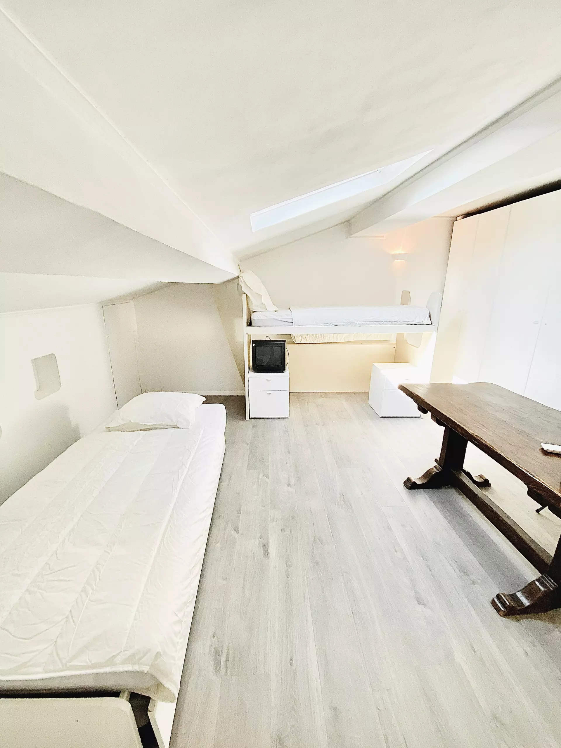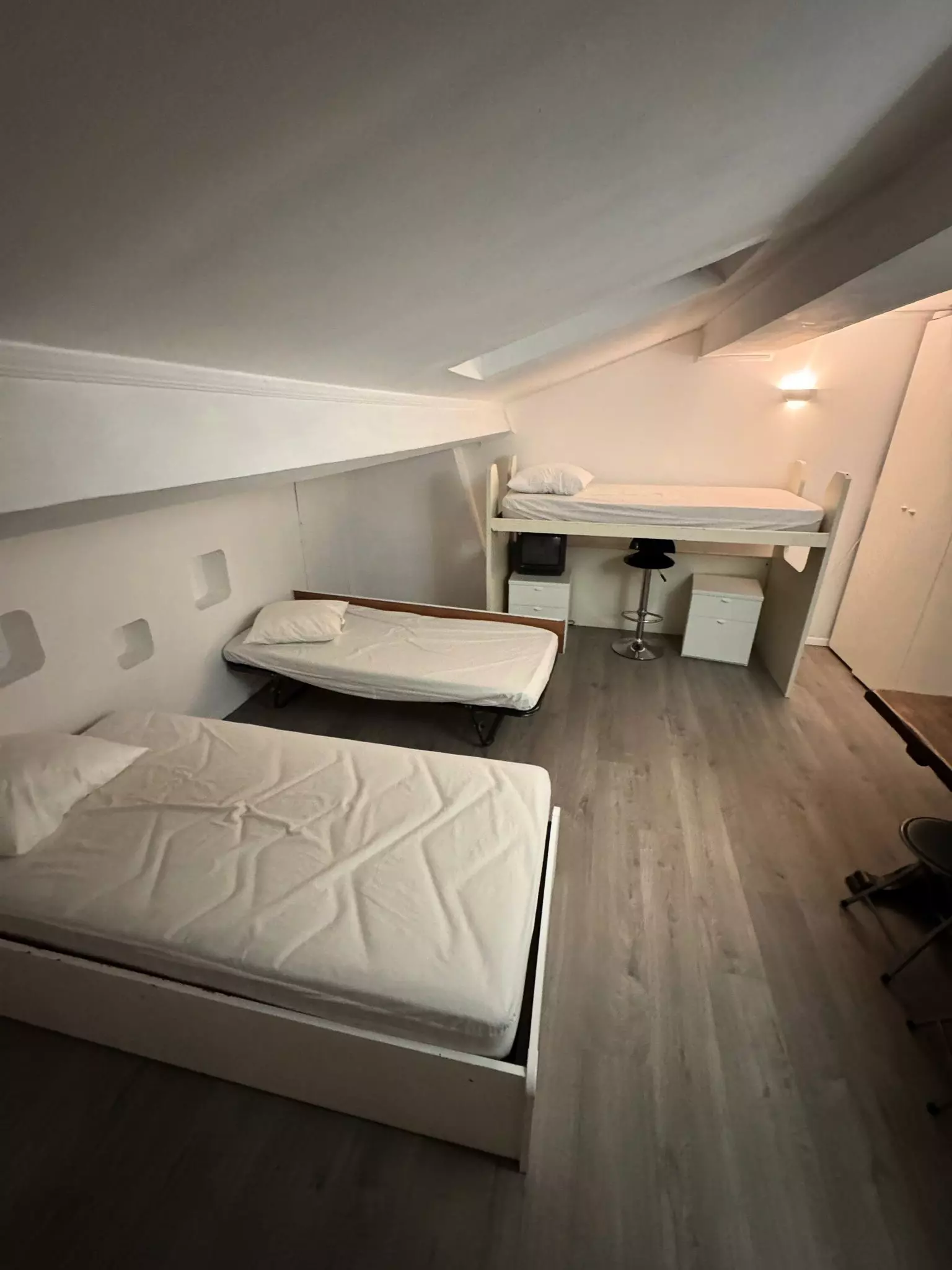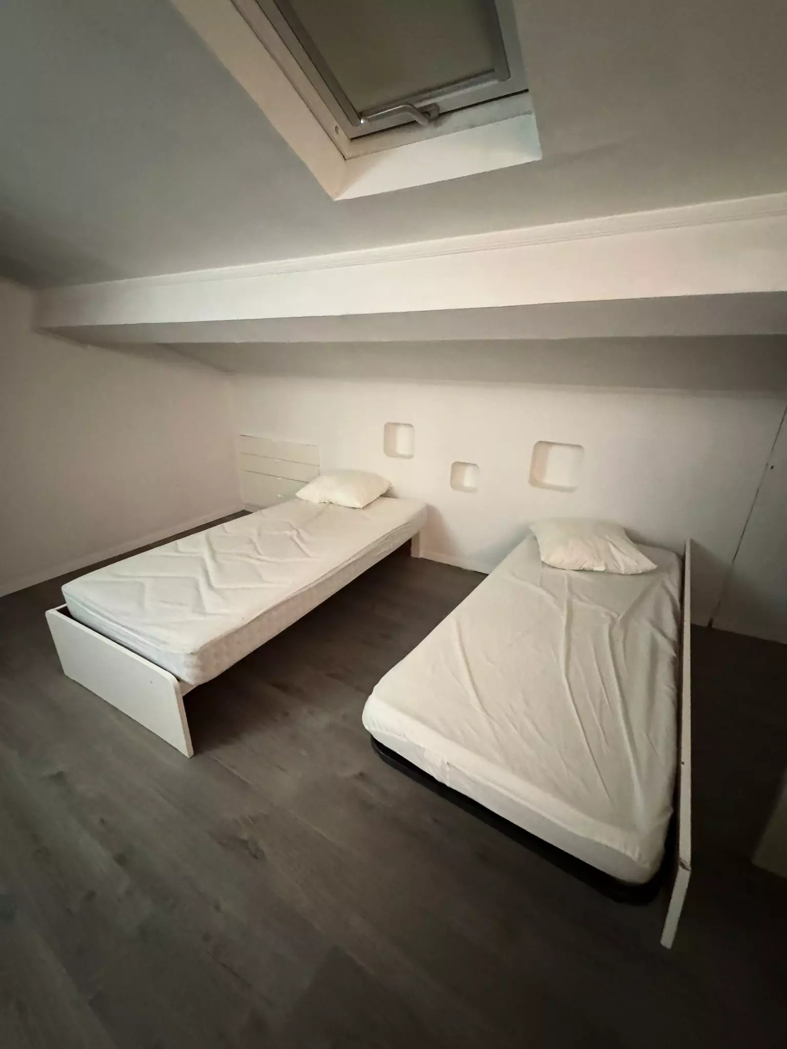 • chambre 1 : 1 lit d'1 place, et 1 lit tiroir d'1 place pouvant se rapprocher pour faire un lit 2 places , 1 lit surélevé d'1 place