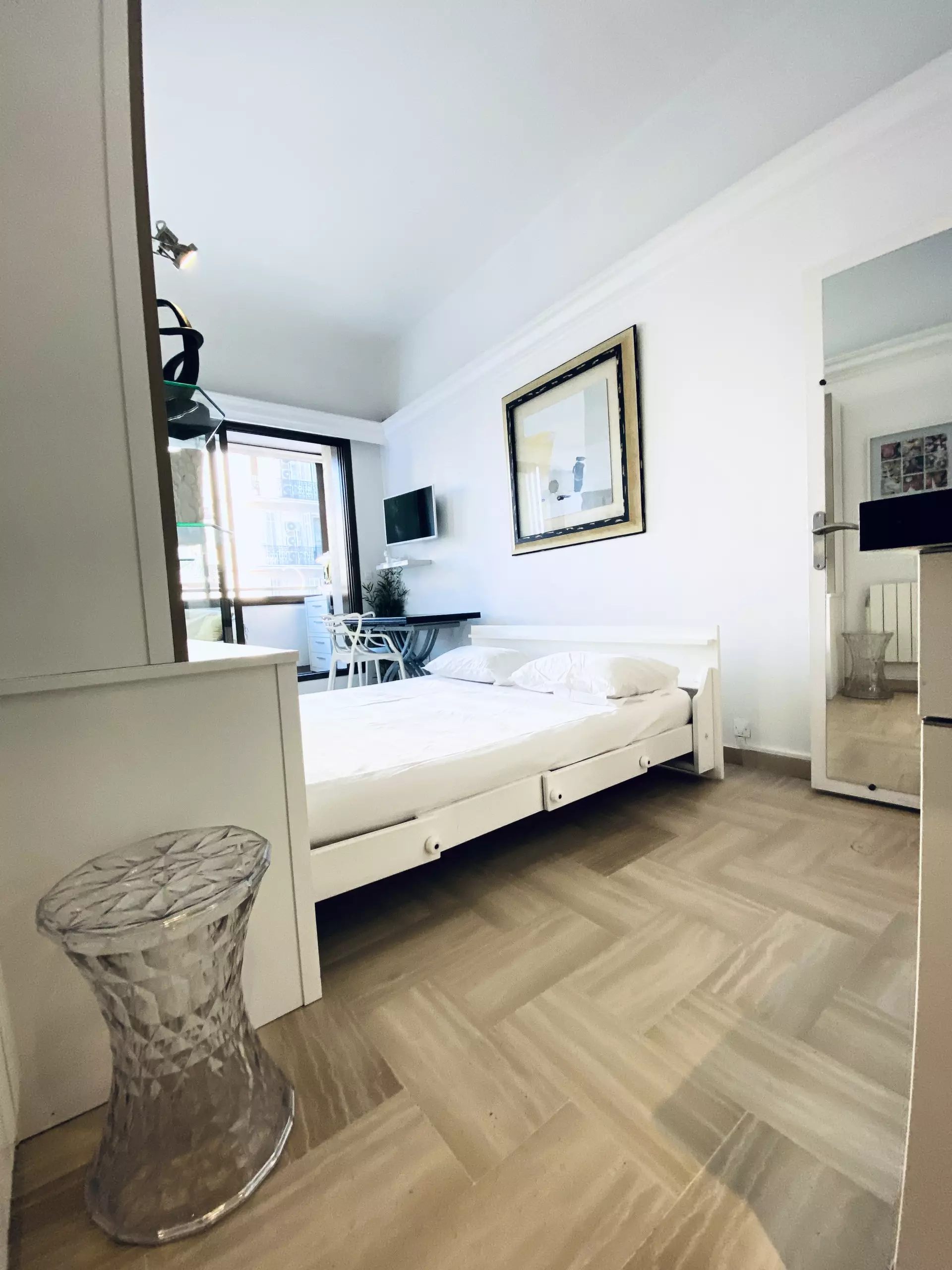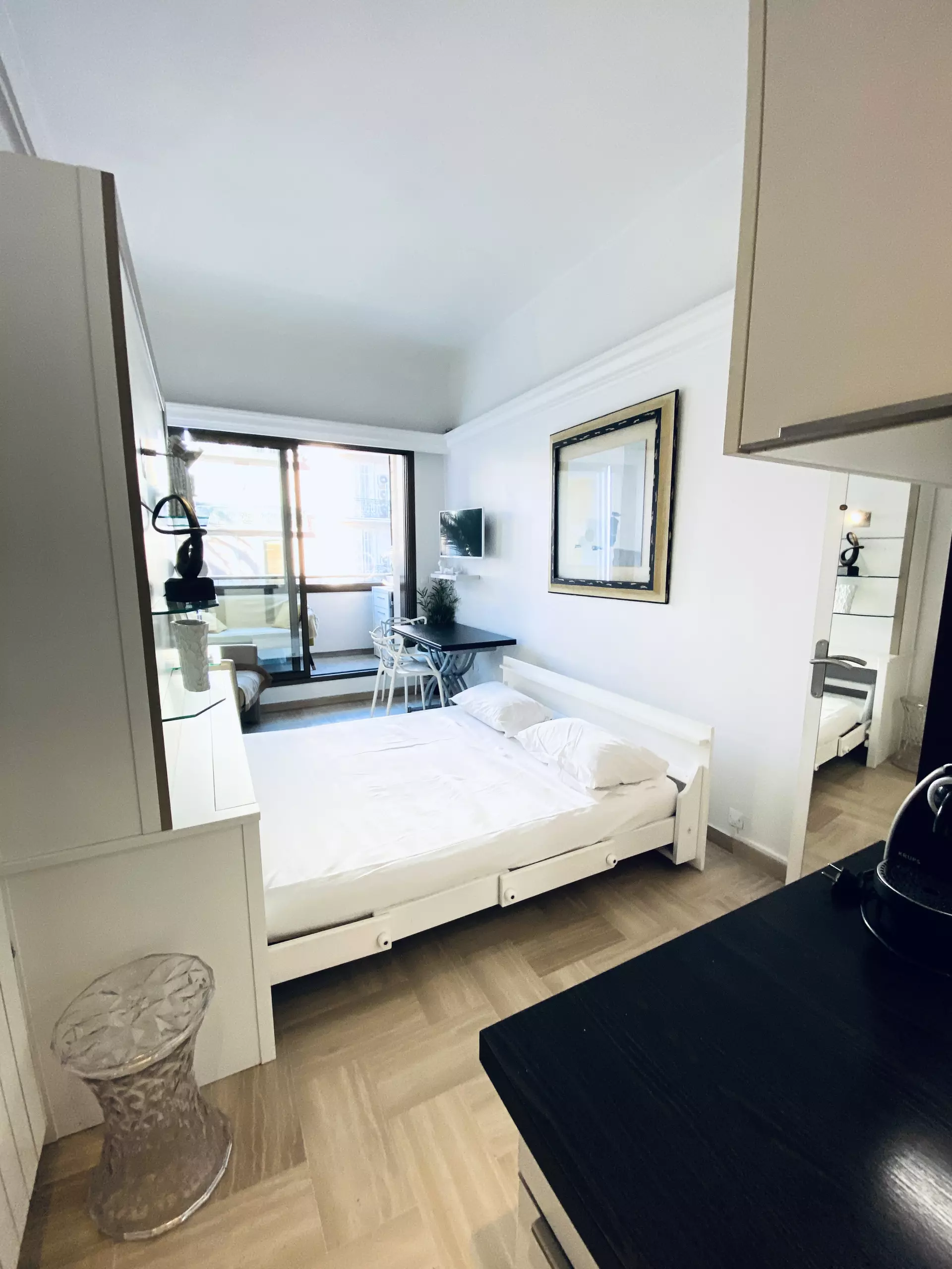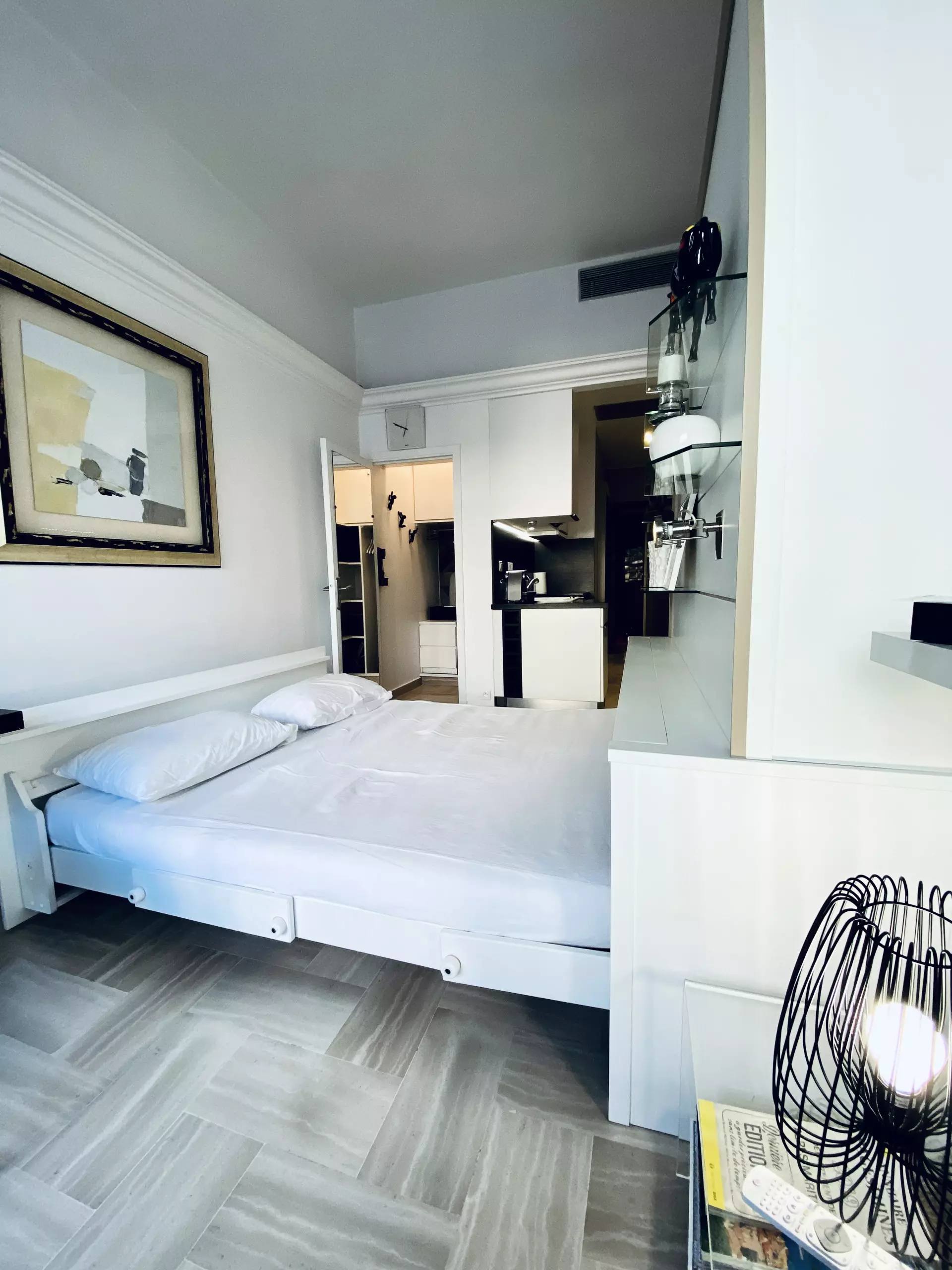 Bienvenue dans ce charmant studio situé dans un immeuble de grand standing, offrant une vue sur l'hôtel Majestic. Niché au 1er étage et accessible par ascenseur, ce studio vous séduira par son agencement astucieux.