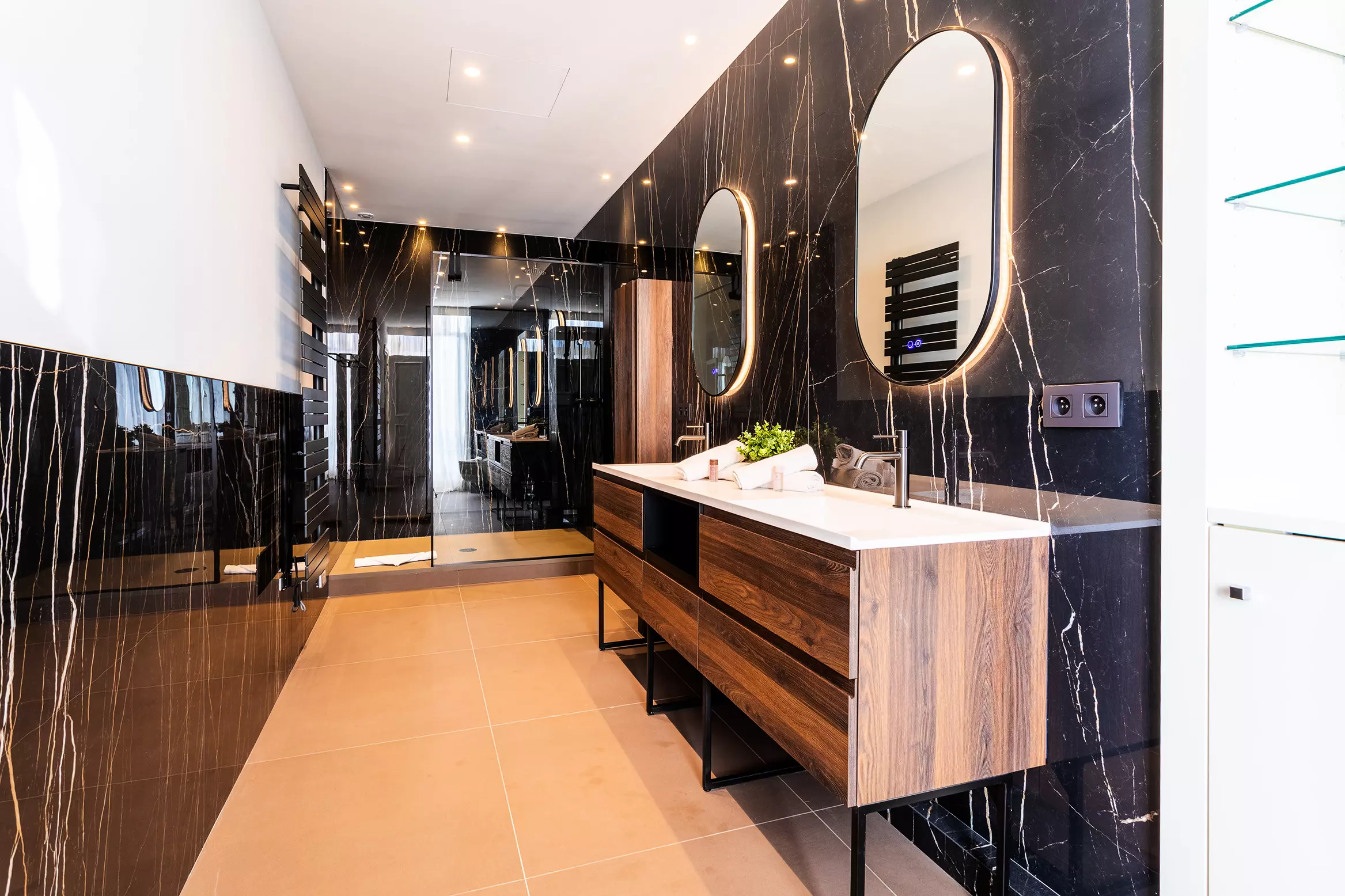 Les trois chambres offrent un espace confortable pour tous les invités. La première chambre dispose de deux lits de 90x200, un grand placard et une salle d'eau avec douche et toilette. La deuxième chambre propose la même configuration. La chambre principale, avec vue sur la place et un balcon, est équipée d'un lit king size 180 x 200, d'un dressing et d'une salle d'eau avec une grande douche et toilette.