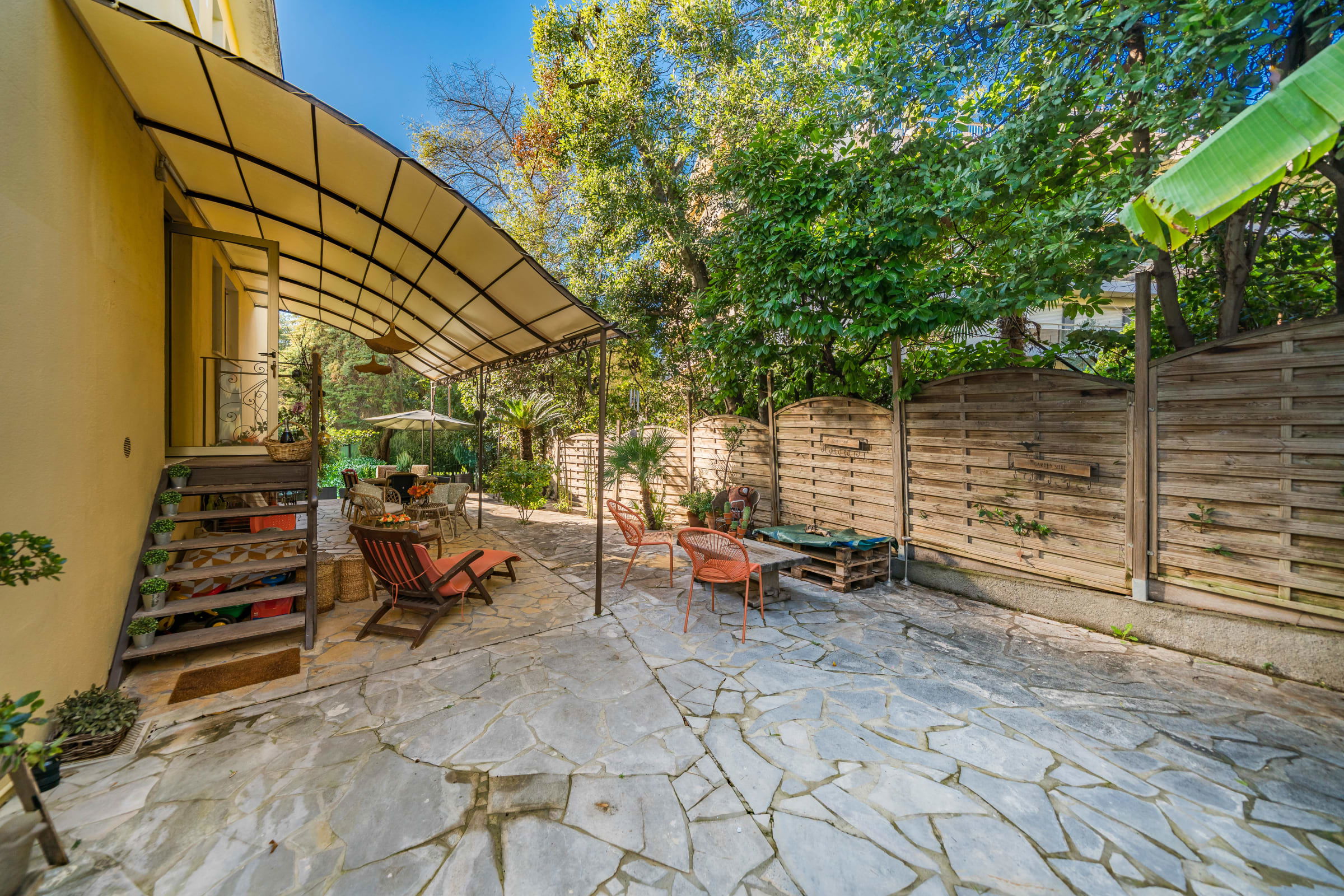 En rez-de-chaussée surélevé, l’appartement s’ouvre sur une grande terrasse privative ensoleillée, véritable extension de l'appartement vers l'extérieur.