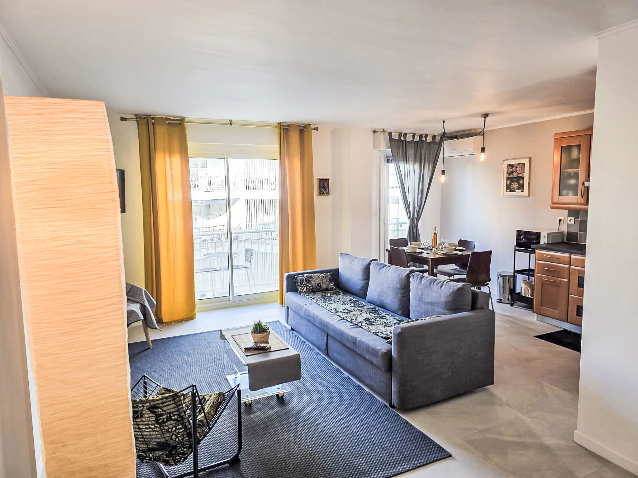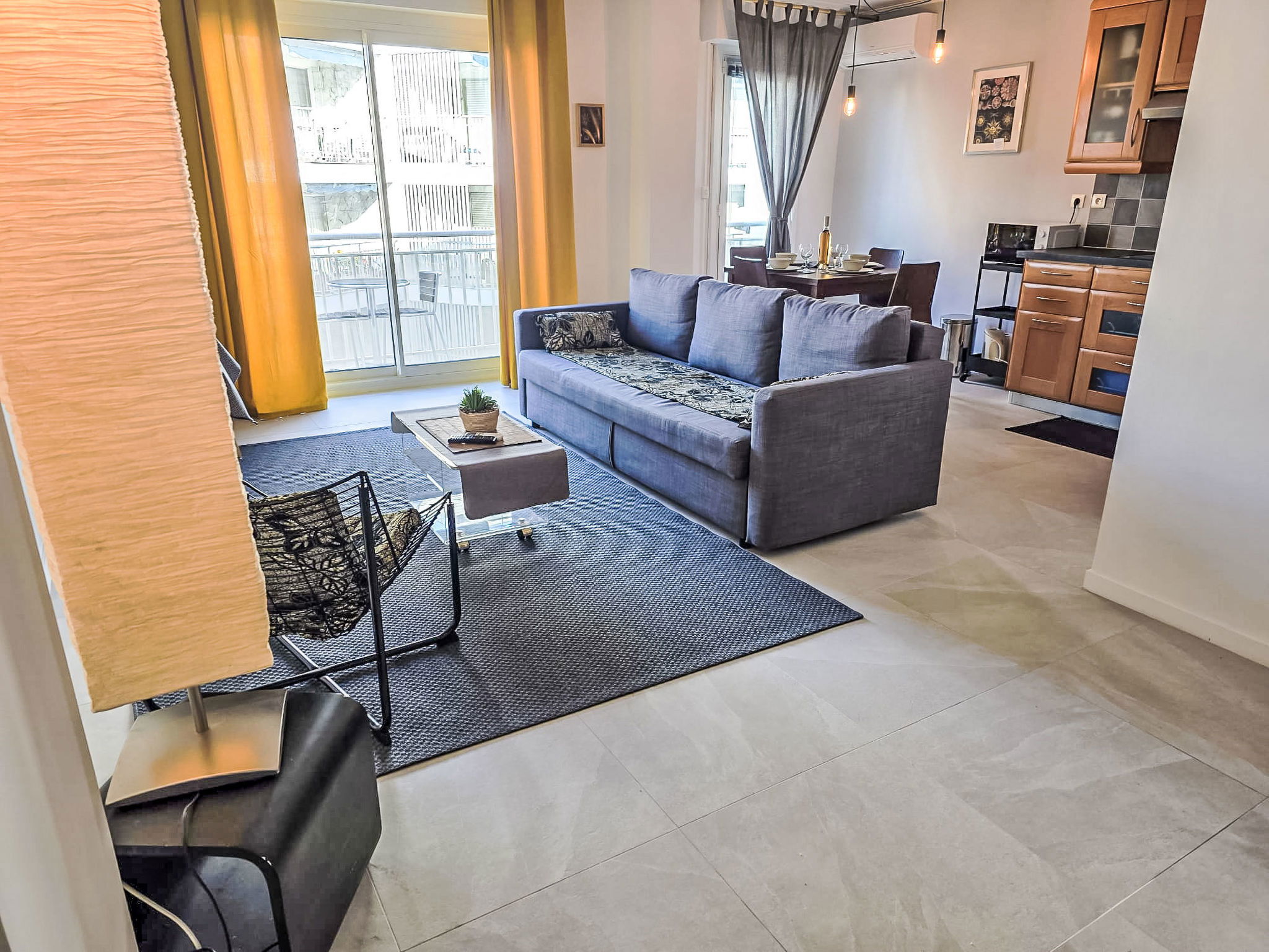 Petite résidence "Reine Astrid", de 5 étages. Dans le quartier de Palm Beach, situation tranquille, à 20 m de la mer, à 20 m de la plage. Infrastructures de la résidence: ascenseur. Parking public possible dans la rue. Magasin d'alimentation, restaurant 50 m, boulangerie 10 m, arrêt de bus "Place de l'étang", plage de sable 20 m. Ecole de voile 200 m. Attractions à proximité: Palais des Festivals 2.5 km, Antibes 10 km, Nice 30 km, Ile de Lérins ferry de cannes 8 km, Monaco 46 km, Aqualand Fréjus 39 km. Les lacs connus sont facilement accessibles: Lac-de-Saint Cassien 37 km, Lac de Sainte-Croix 112 km. Région de randonnées: La pointe de l'Aiguille l'Estérel 15 km, Le sentier du littoral Antibes 13 km.