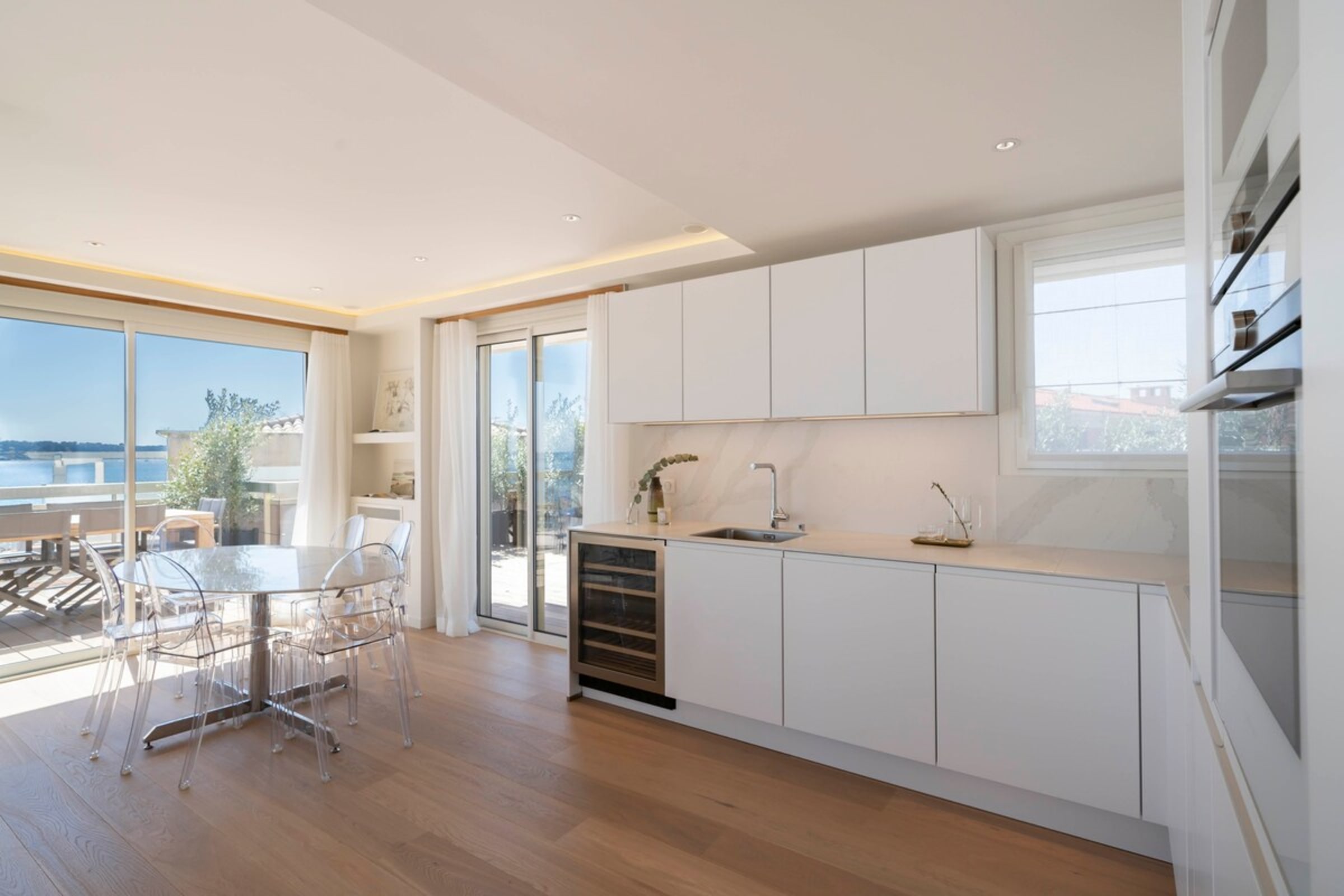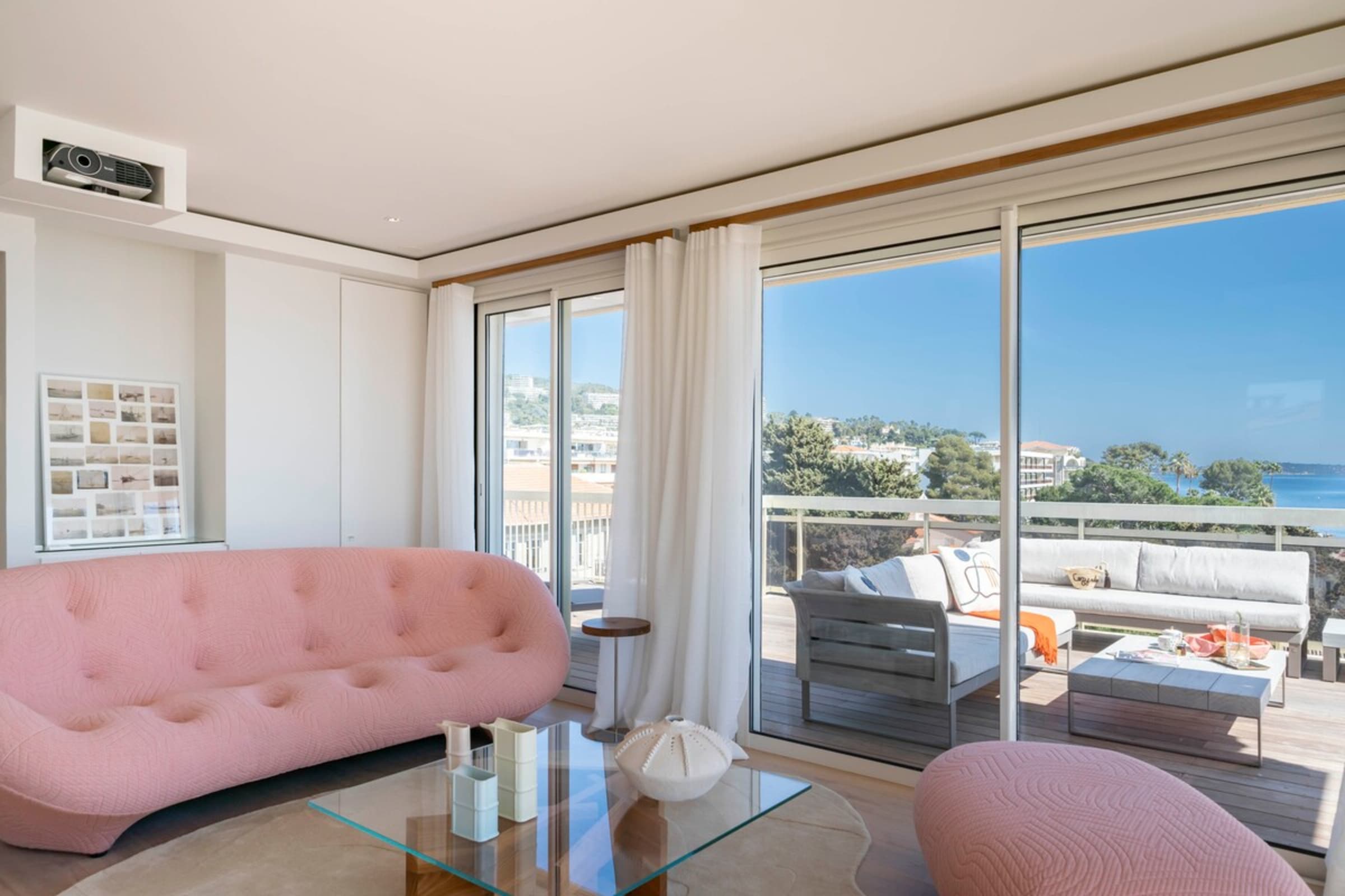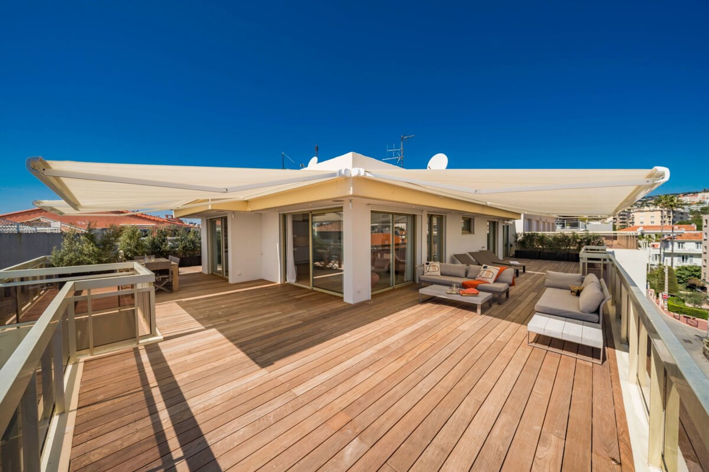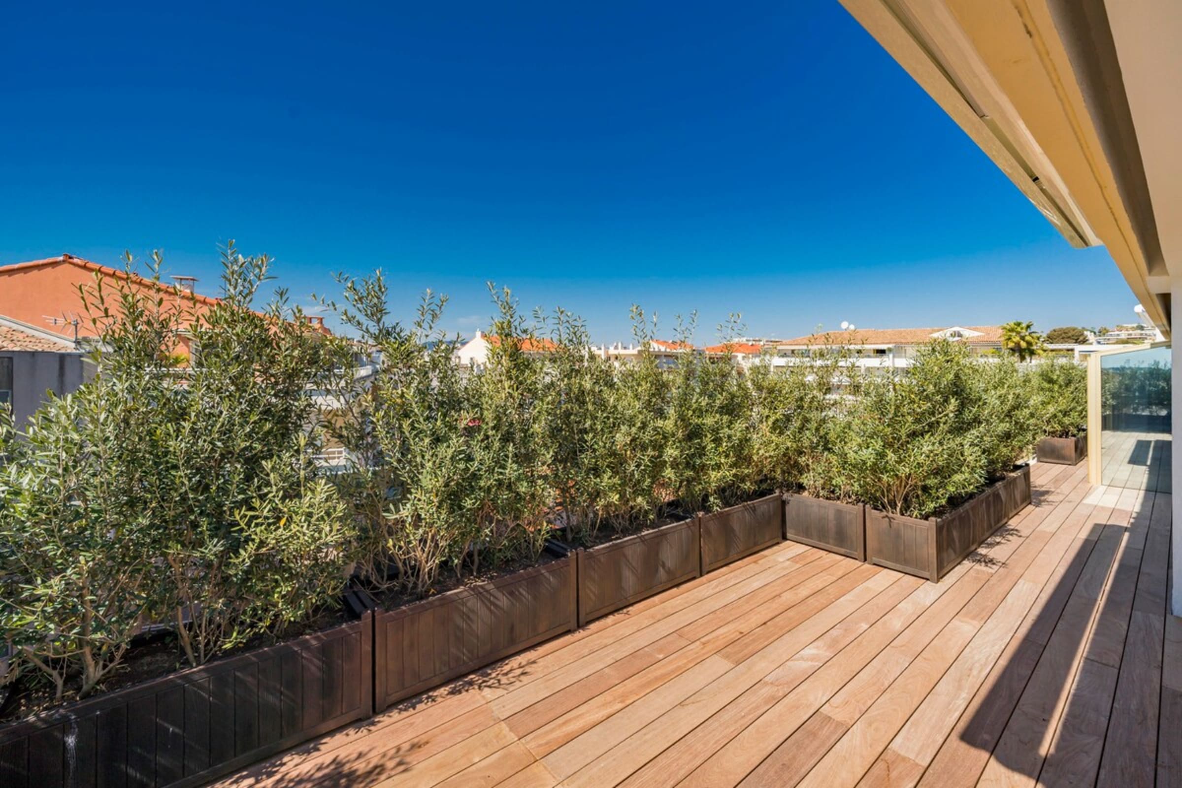 Ce très beau 4 pièces d’une superficie de 91m2 se situe au 5ème et dernier étage d’un immeuble de standing dans le secteur du Mouré Rouge. Ce bien a été entièrement refait à neuf avec des prestations de qualité. Il se compose d’un beau séjour avec cuisine américaine, trois chambres en suite avec salles de bains et WC pour deux d’entre-elles, et une magnifique terrasse de 151m2. Ce bien d’exception bénéficie d’une vue époustouflante sur la mer et les collines de la Californie.