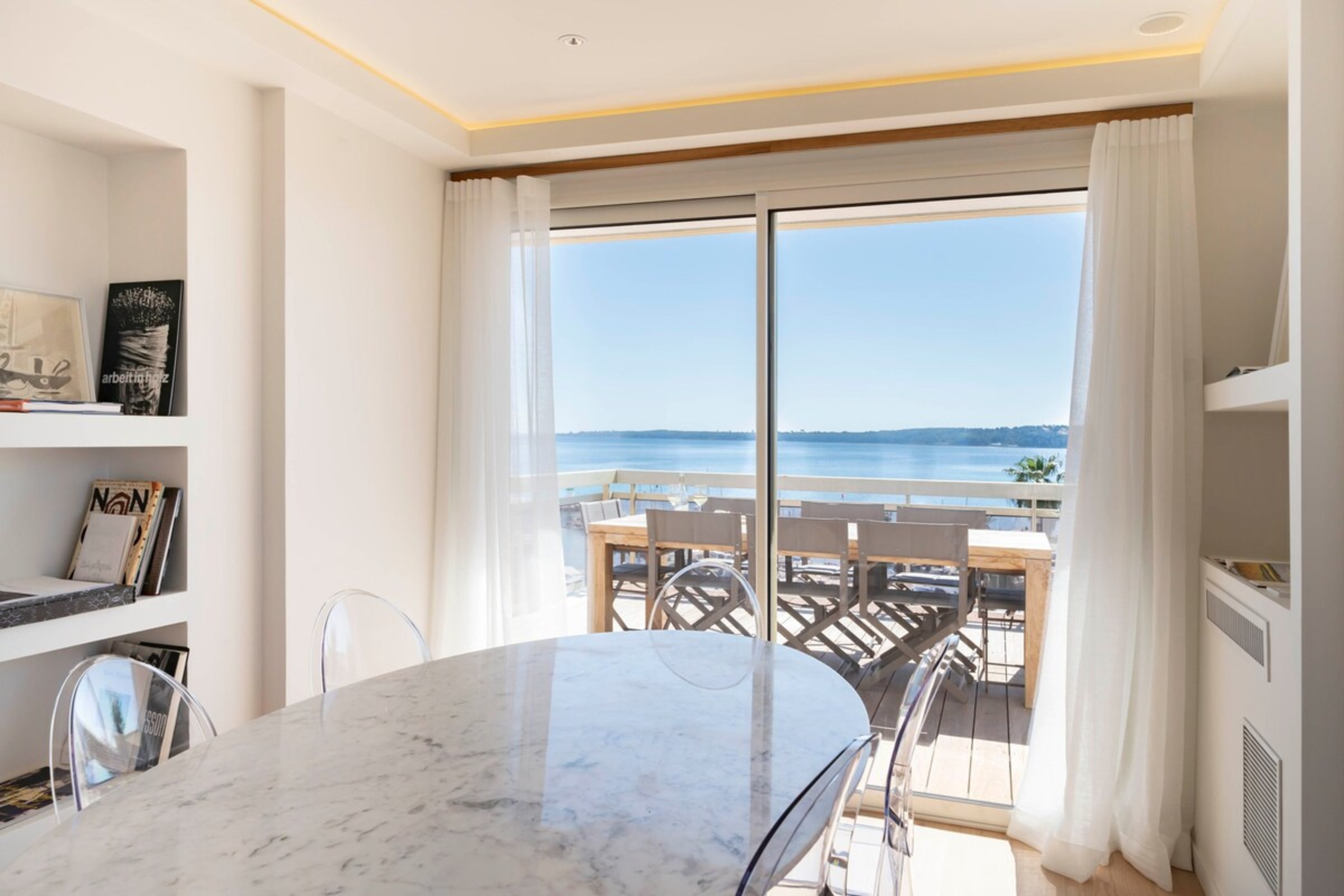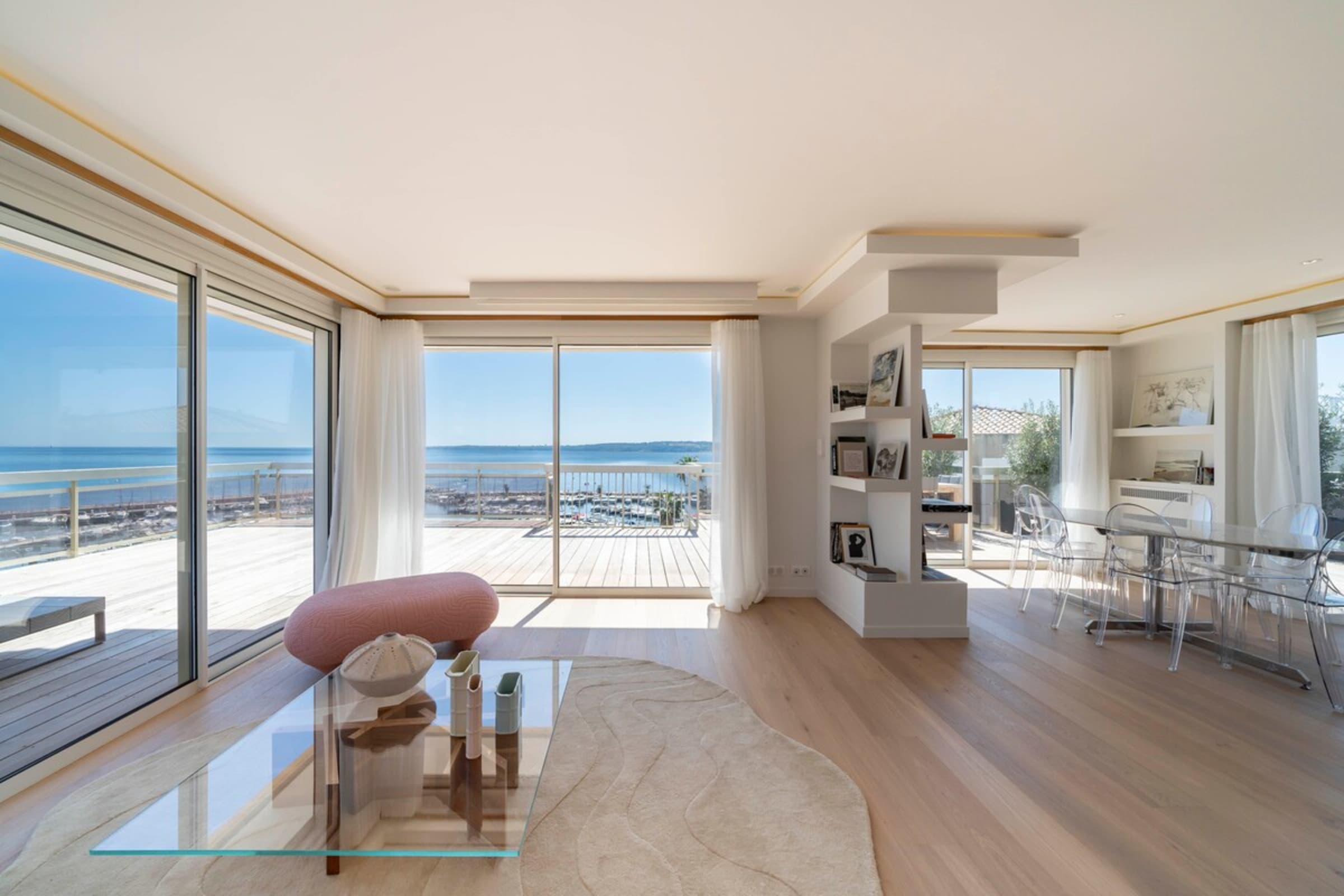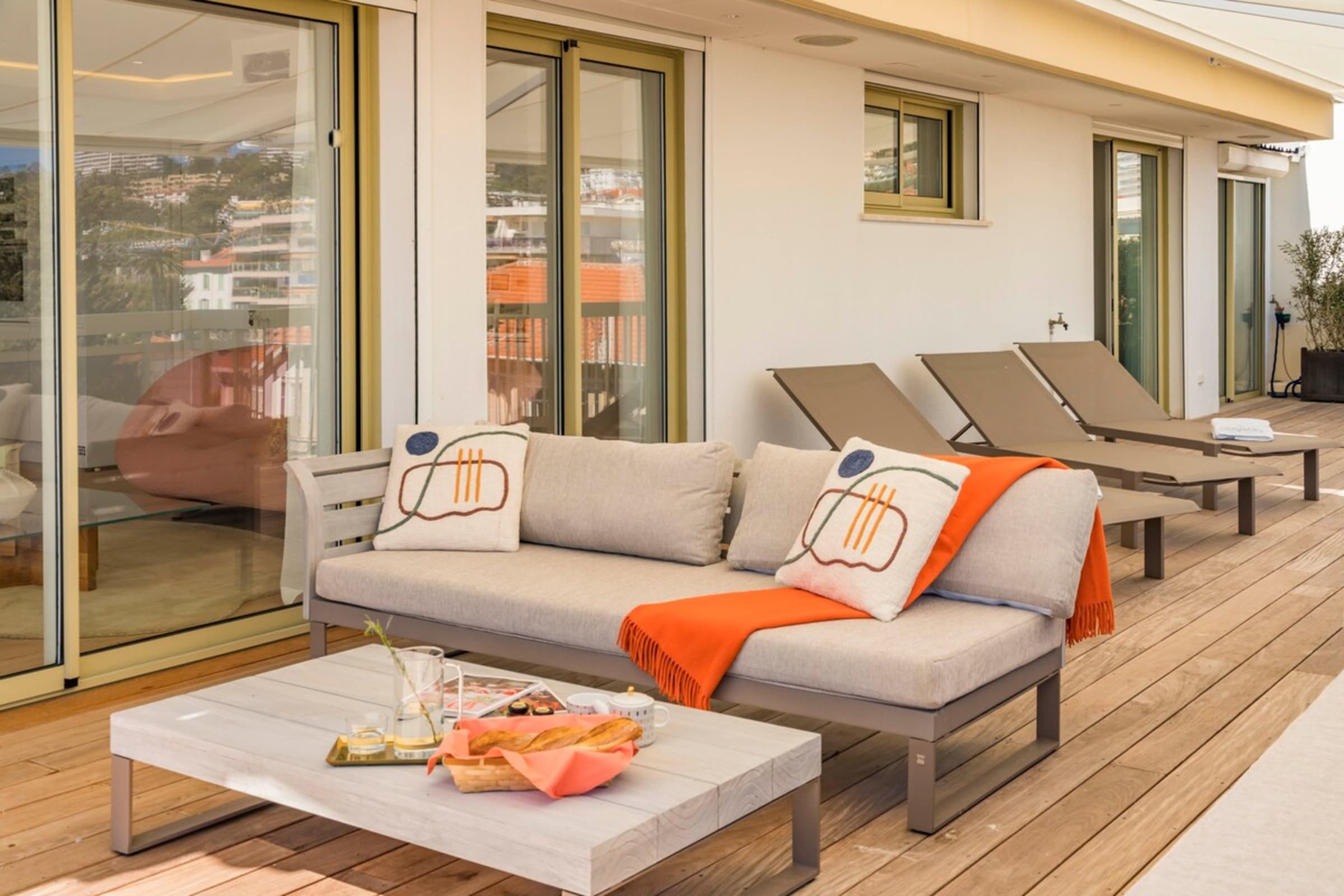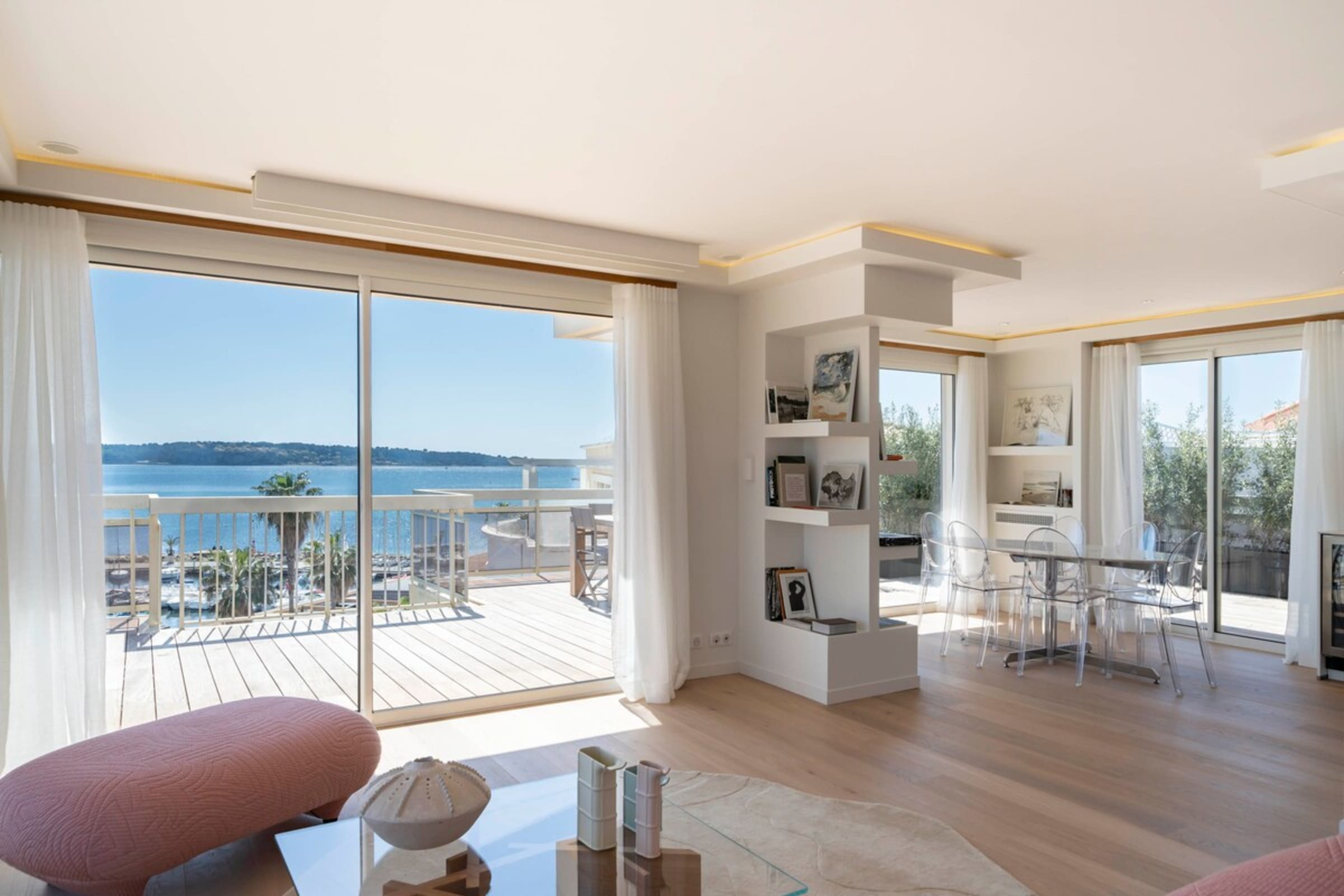 Ce très beau 4 pièces d’une superficie de 91m2 se situe au 5ème et dernier étage d’un immeuble de standing dans le secteur du Mouré Rouge. Ce bien a été entièrement refait à neuf avec des prestations de qualité. Il se compose d’un beau séjour avec cuisine américaine, trois chambres en suite avec salles de bains et WC pour deux d’entre-elles, et une magnifique terrasse de 151m2. Ce bien d’exception bénéficie d’une vue époustouflante sur la mer et les collines de la Californie.