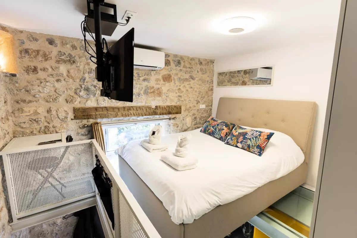 Le logement dispose d'un lit double accueillant jusqu'à 2 personnes dans une ambiance haut de gamme.