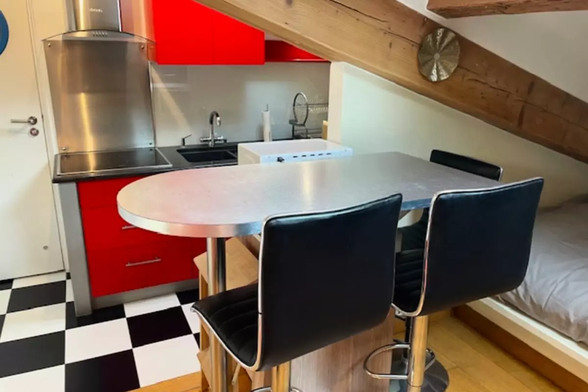 Le logement est entièrement équipé avec une cuisine complète comprenant four, micro-onde,Appareil à raclette, machine à café et réfrigérateur, ainsi qu'une salle de douche moderne, un lave-linge, un fer à repasser, la climatisation et un détecteur de fumée pour votre sécurité.