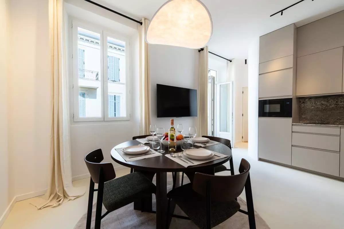L’ensemble propose une décoration contemporaine, un mobilier de qualité et une atmosphère soignée, pensée pour un séjour confortable au cœur de Cannes.