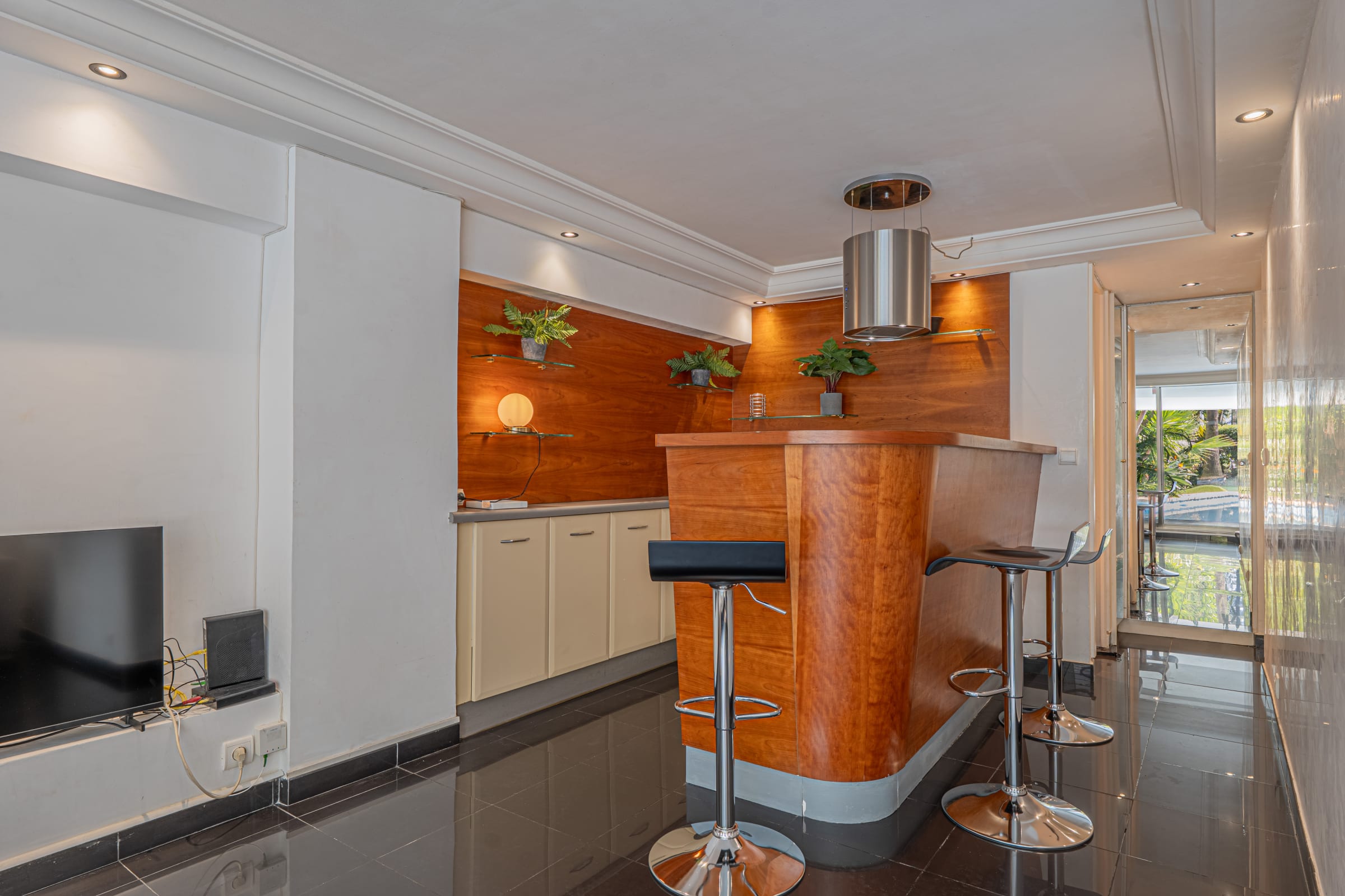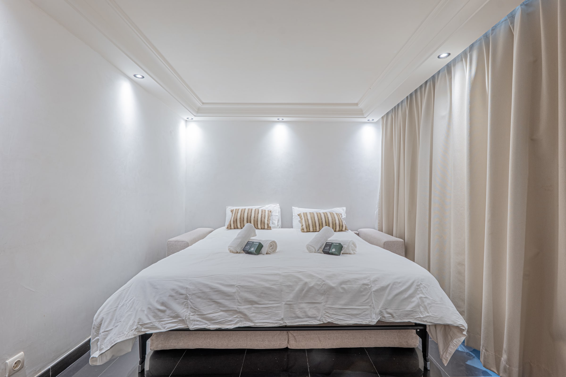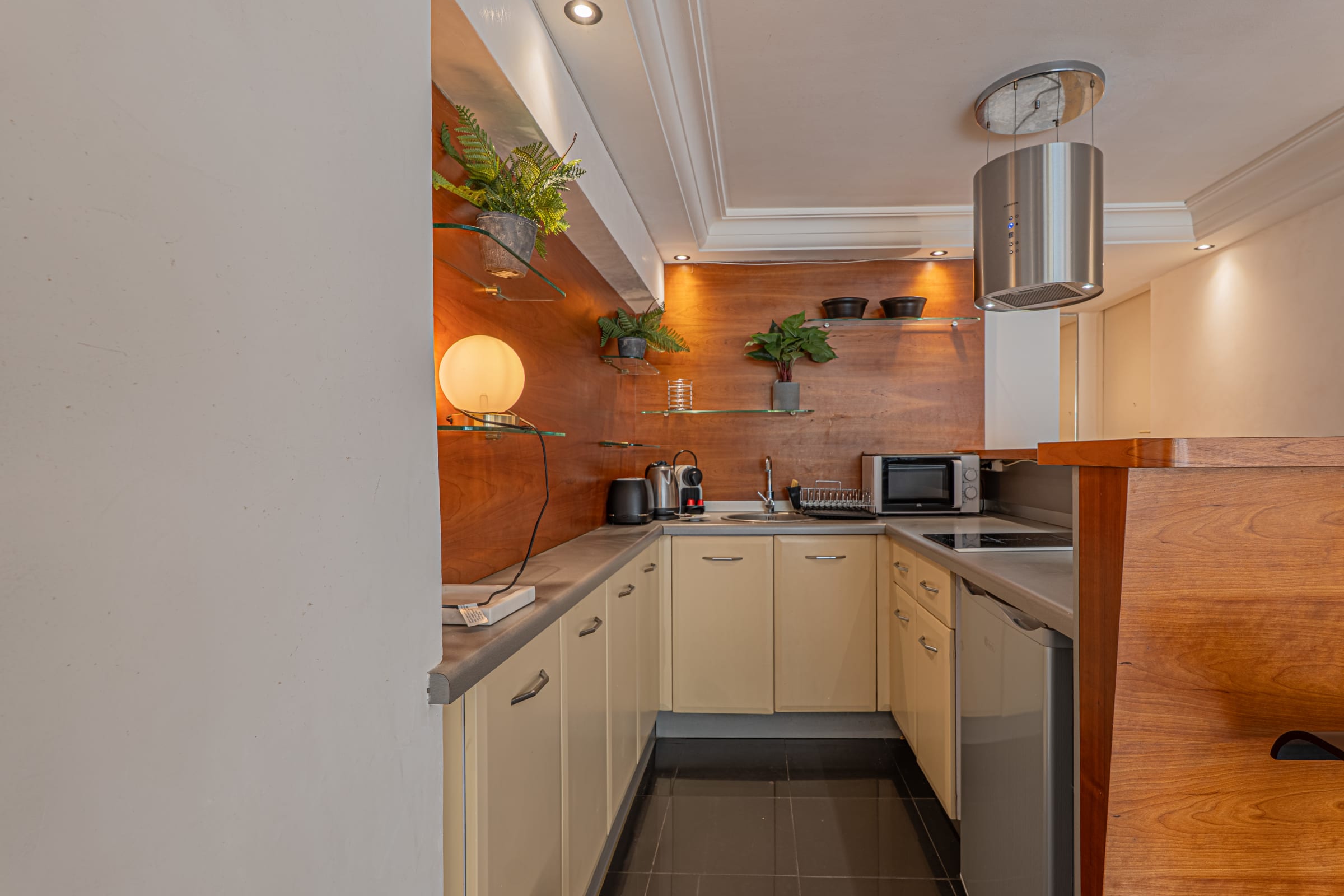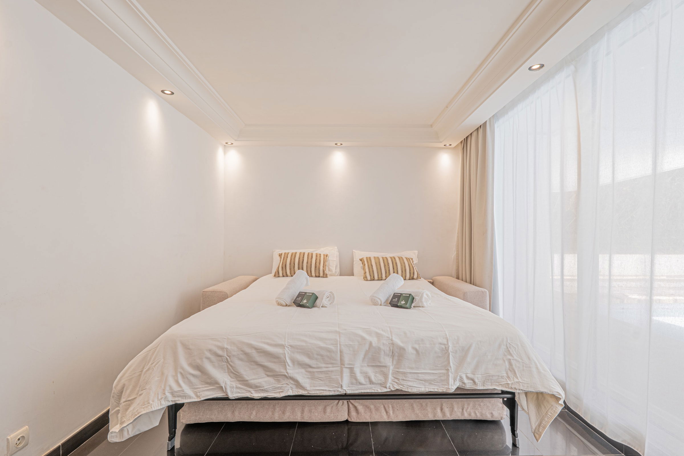 Notre studio de 28 m², situé Boulevard de la Croisette au rez-de-chaussée d'un immeuble de standing, offre de belles prestations à proximité immédiate de la Croisette et à 20 min à pied du Palais des Festivals et des Congrès (très belle balade en bord de mer !). Bijou Plage est à 100 mètres. Entièrement rénové et décoré avec soin, l'appartement se compose d'une belle pièce principale avec un coin cuisine, un coin salon avec une TV. Le canapé du salon se transforme en canapé-lit confortable. La salle de bain comprend une douche, un meuble vasque, un WC et un lave-linge. L'appartement donne sur un bassin d'ornement. Parking public dans la rue ou payant à 2 min à pied. Nombreux restaurants et commerces à proximité immédiate.