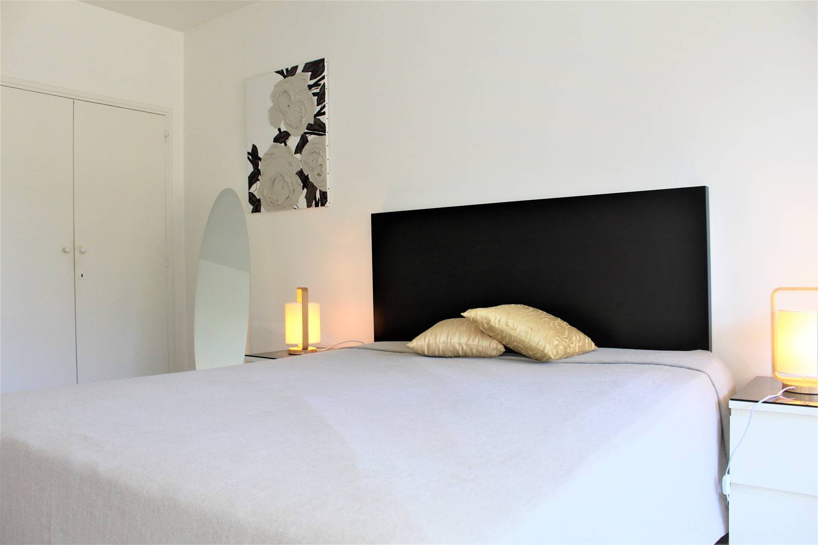 Très bel appartement moderne, composé d’un séjour avec deux canapés dont un convertible deux personnes donnant sur une grande terrasse avec vue jardin et port, d’une grande cuisine indépendante équipée indépendante (four, lave-vaisselle, lave-linge), d’une chambre climatisé avec deux lits simples et d’une seconde chambre climatisé avec un lit double, d’une salle d’eau, d’une salle de bain et d’un toilette séparé. Cet appartement a une grande terrasse de 20 m².
