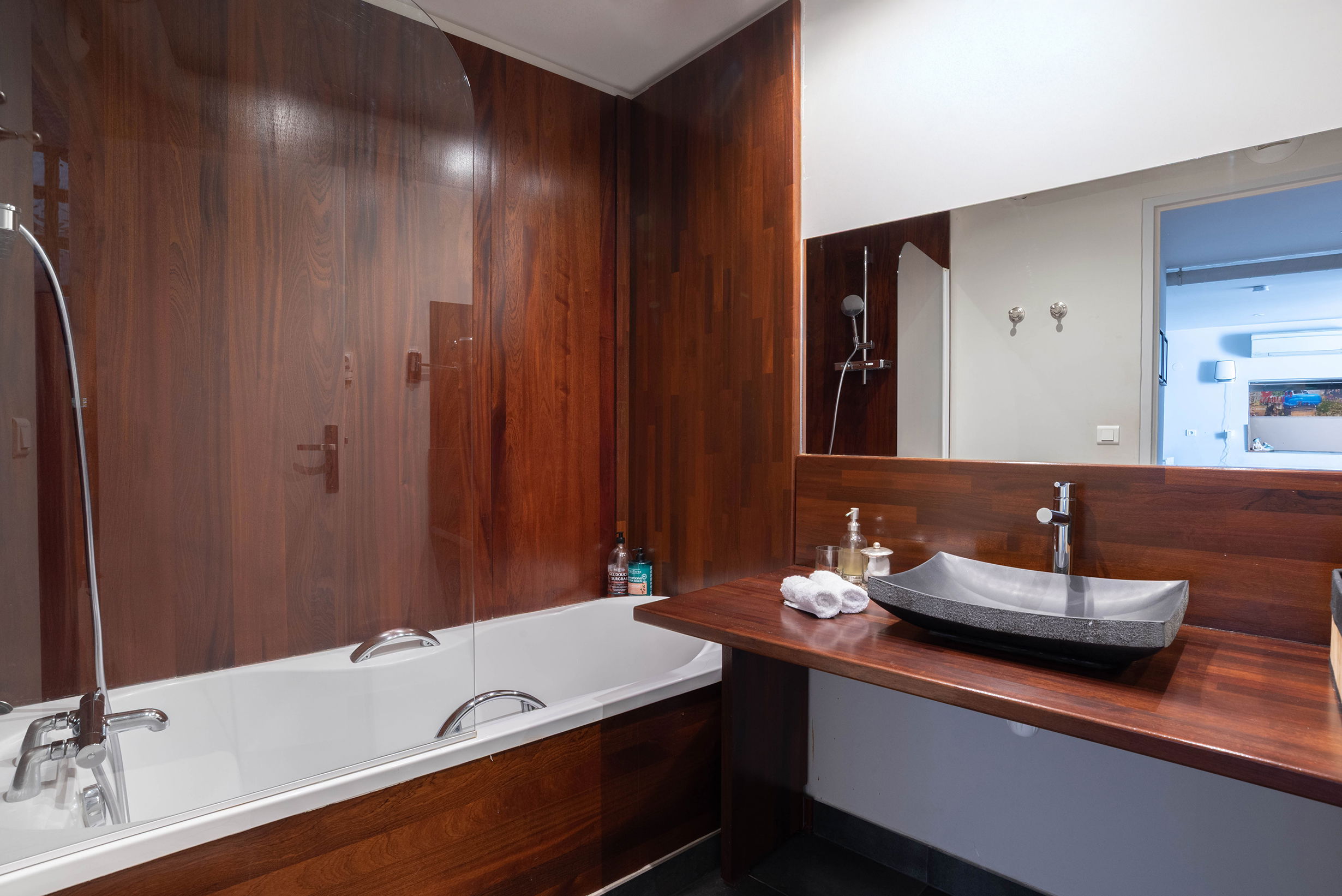 • Cuisine américaine entièrement équipée : réfrigérateur-congélateur, plaques à induction, four, hotte, micro-ondes, lave-vaisselle, machine expresso.