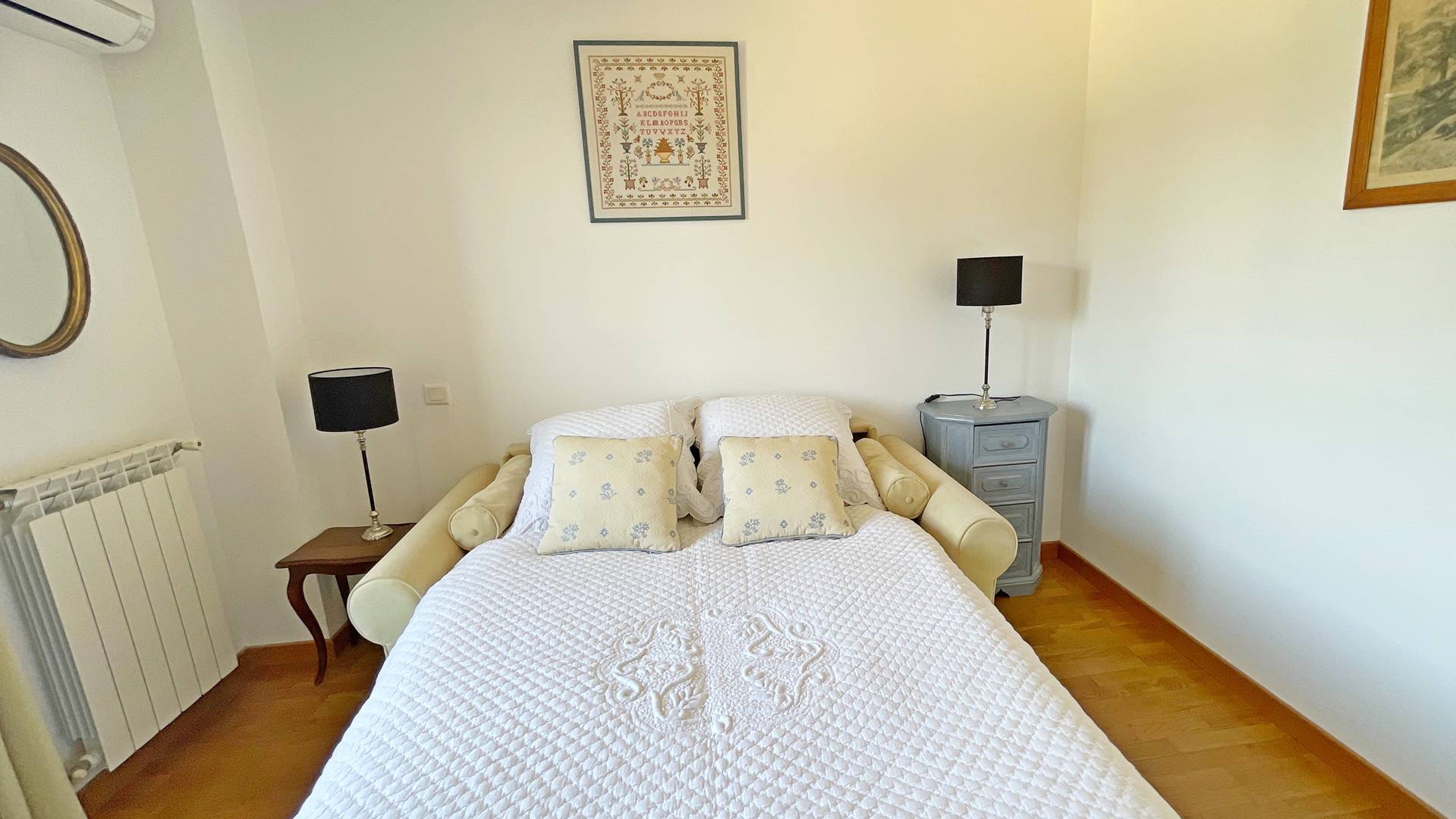 Au 1er étage 2 chambres 1 canapé lit 140x200 1 lit double 160X200, salle de bain et WC séparée.