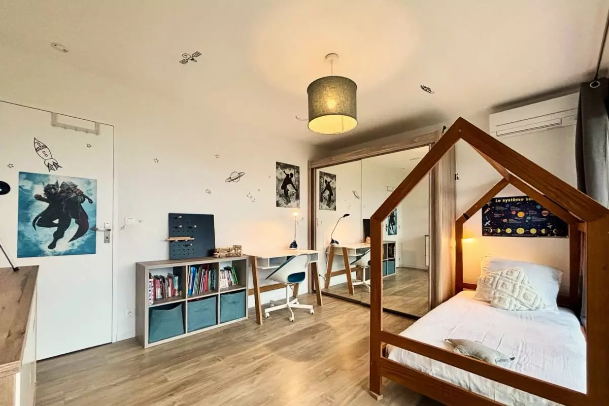 Vous profitez d’un jardin privatif de 150 m², parfait pour les repas dehors, les moments détente… et les familles : jeux d’extérieur pour enfants sur place.